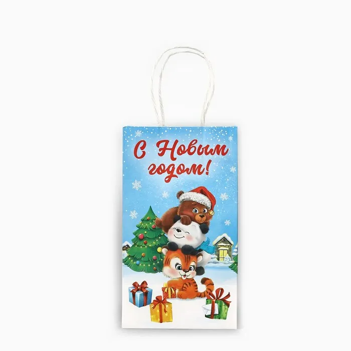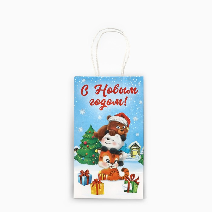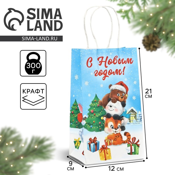 Пакет подарочный новогодний крафтовый «Новый год», 12 х 9 х 21 см — Характеристики