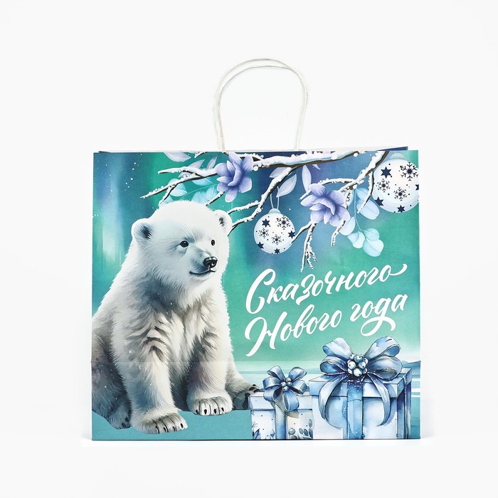 Пакет подарочный новогодний крафтовый «Новый год», 32 х 28 х 15 см — Характеристики