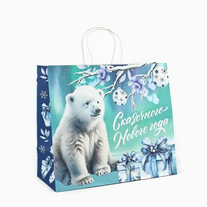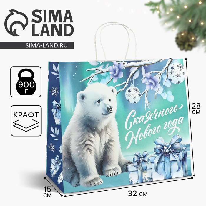 Пакет подарочный новогодний крафтовый «Новый год», 32 х 28 х 15 см — Характеристики