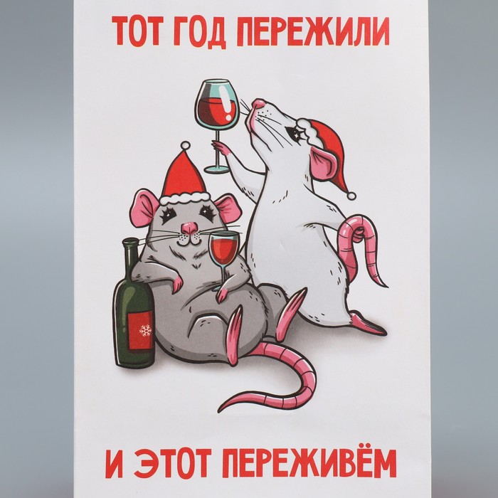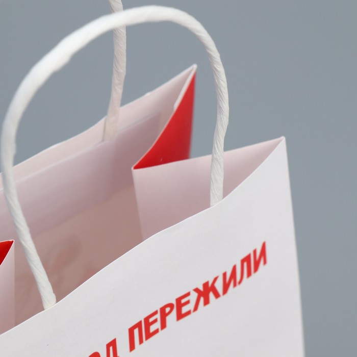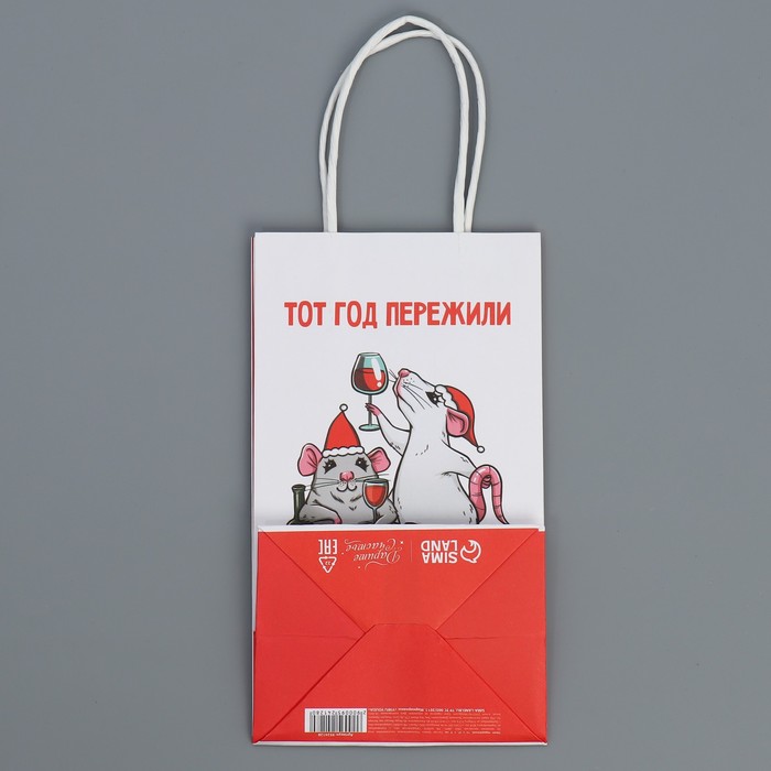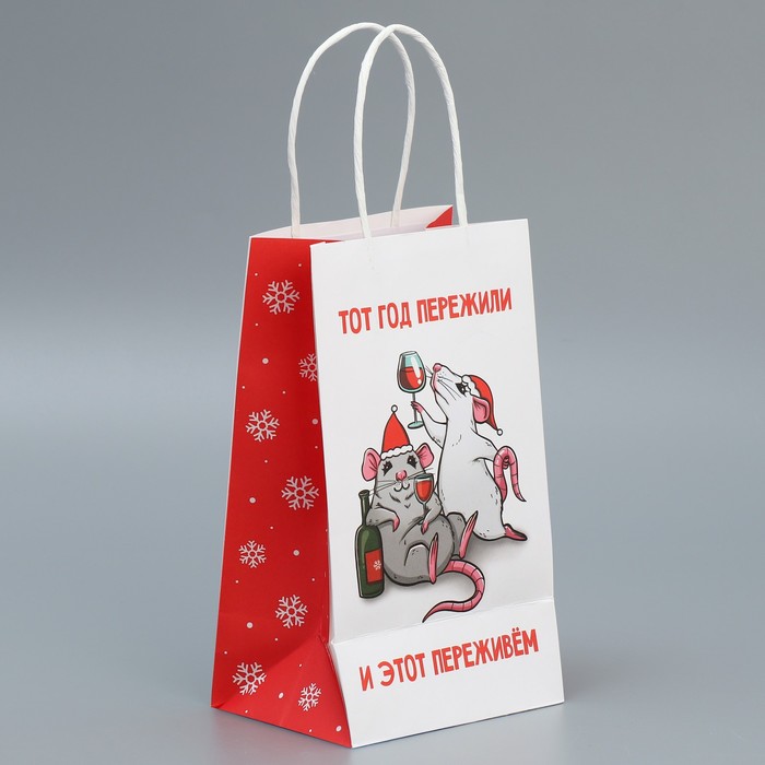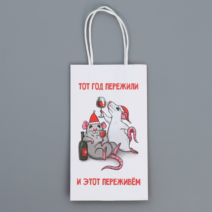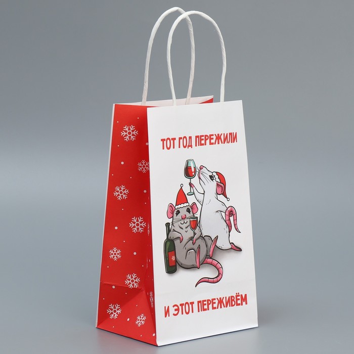 Пакет подарочный новогодний крафтовый «Переживём все», 12 х 21 х 9 см — Характеристики