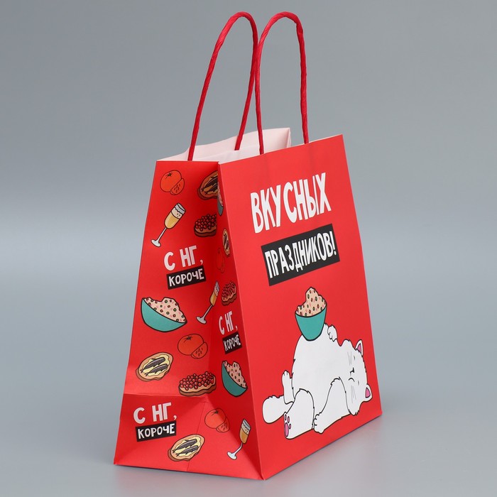 Пакет подарочный новогодний крафтовый «Праздники», 22 х 22 х 11 см — Характеристики