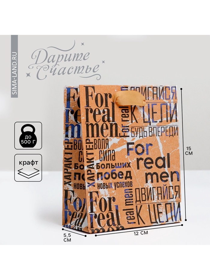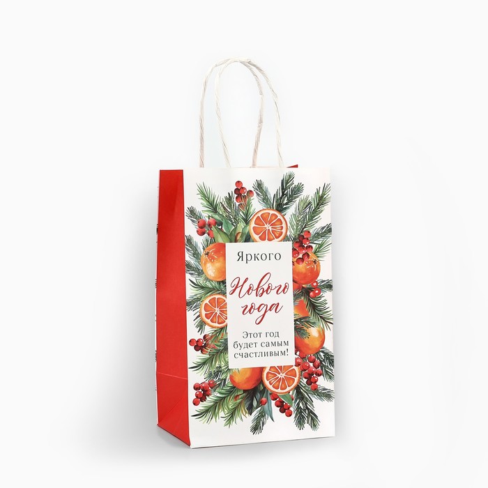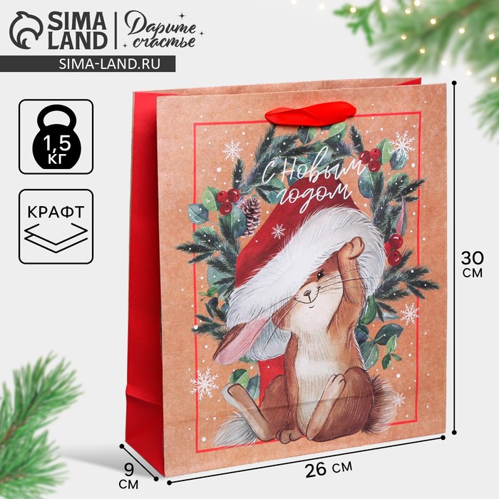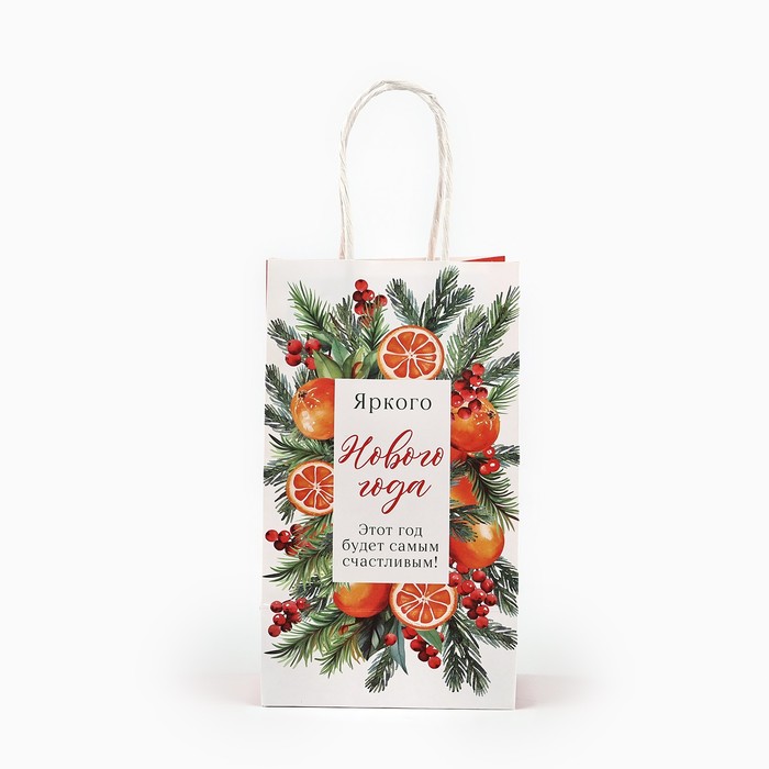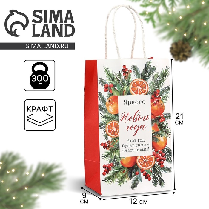 Пакет подарочный новогодний крафтовый «С Новым годом», 12 х 9 х 21 см — Характеристики