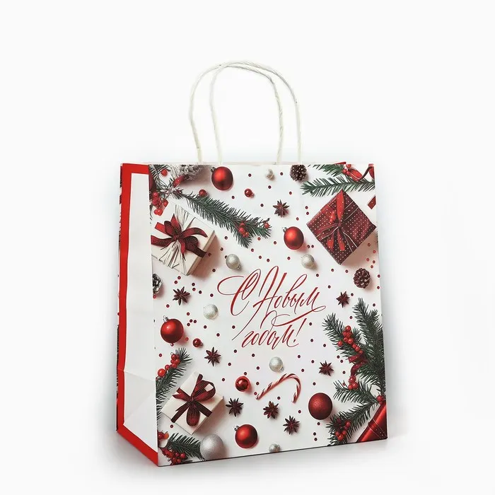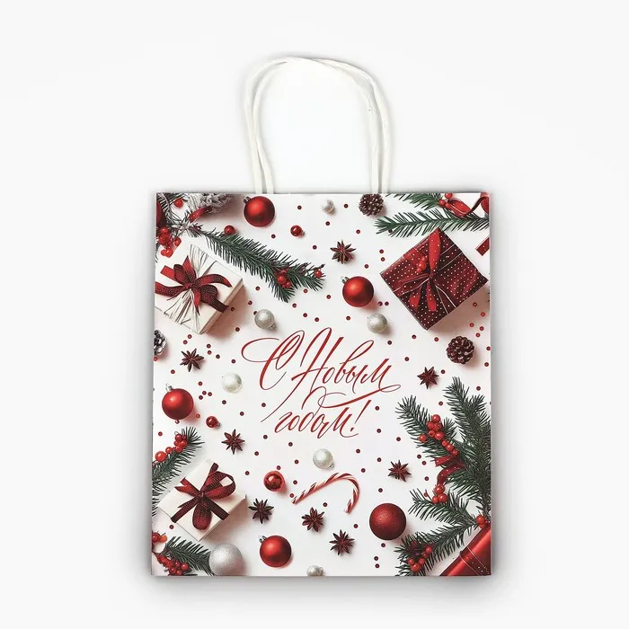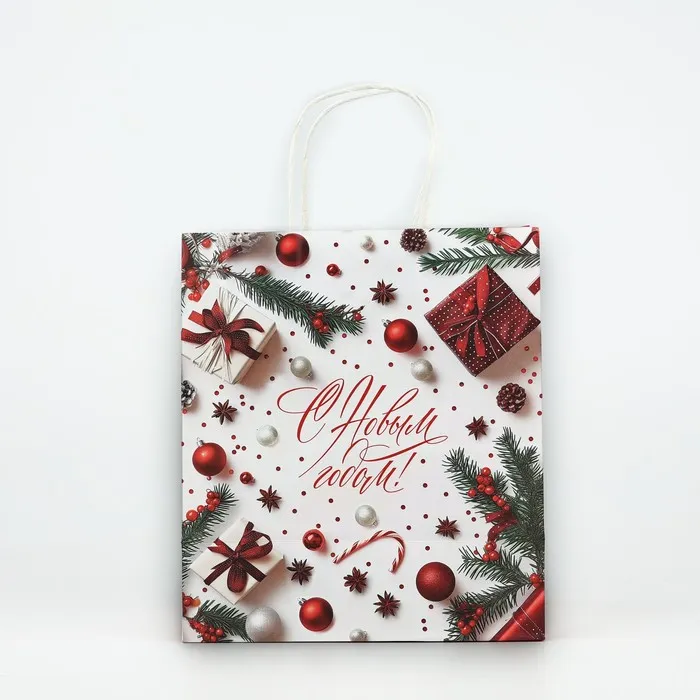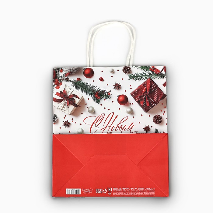 Пакет подарочный новогодний крафтовый «С Новым годом», 22 х 12 х 25 см — Характеристики