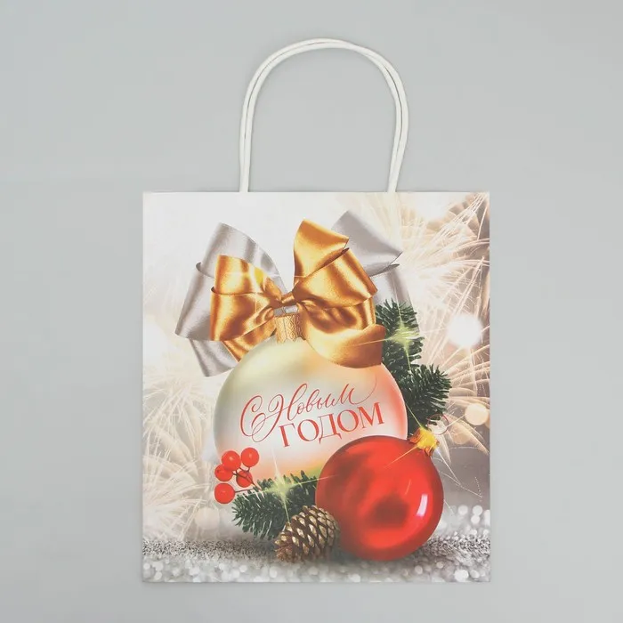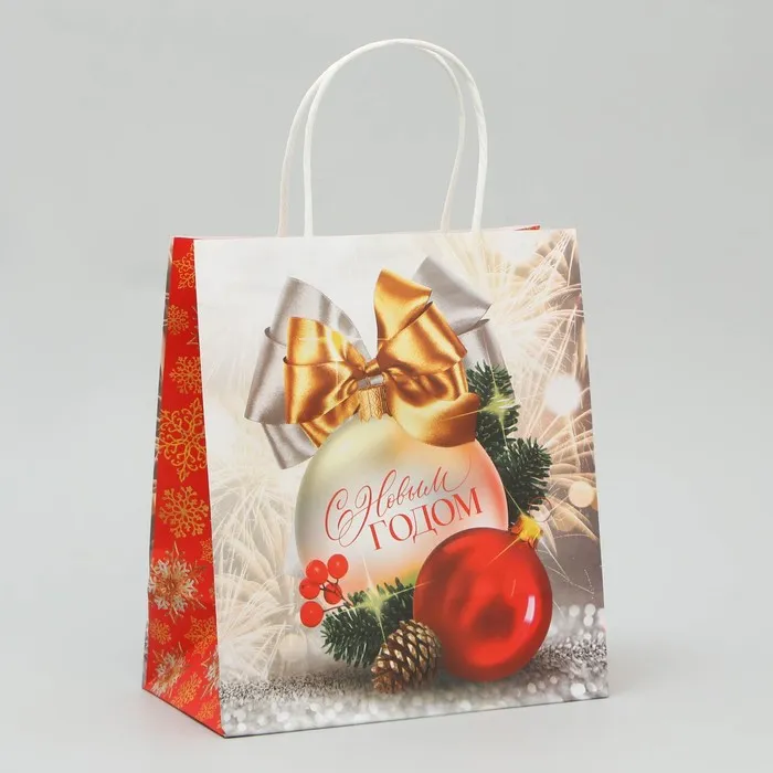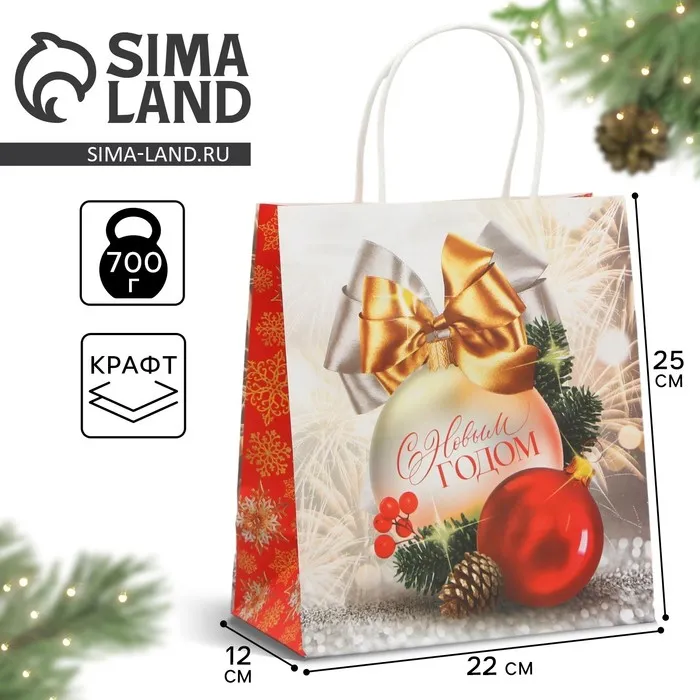 Пакет подарочный новогодний крафтовый «С Новым годом», 22 х 25 х 12 см — Характеристики