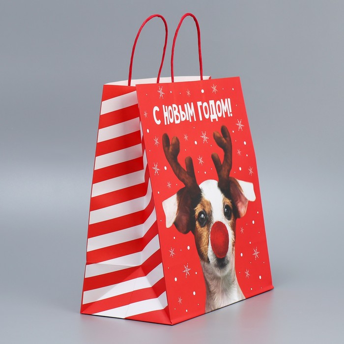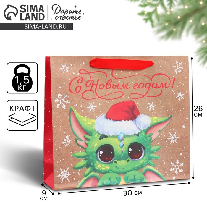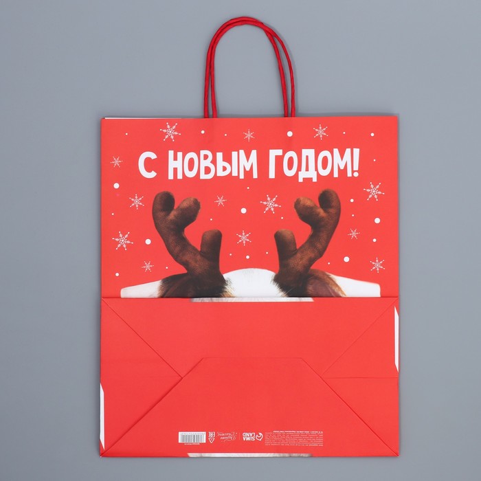 Пакет подарочный новогодний крафтовый «С Новым годом», 28×32×15 см — Характеристики