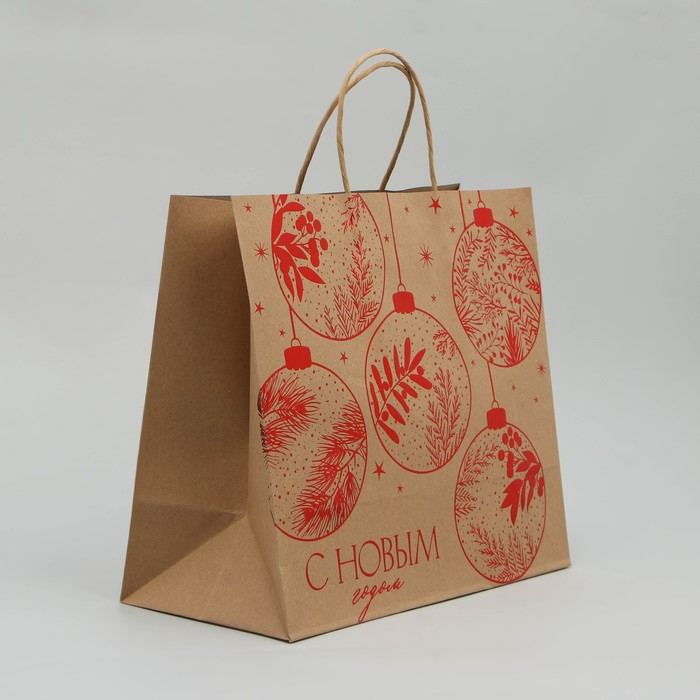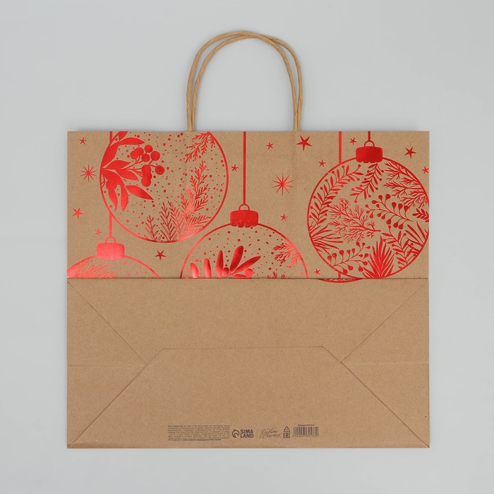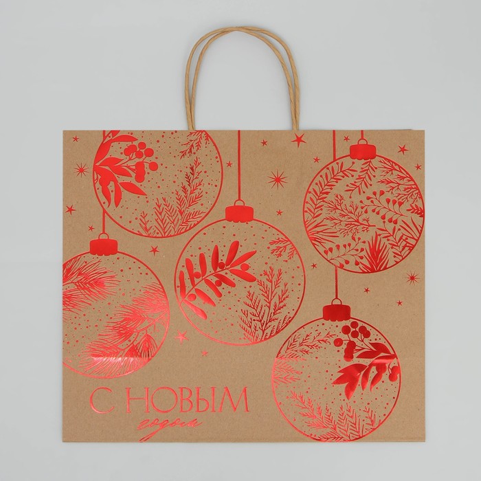 Пакет подарочный новогодний крафтовый «С Новым годом», 32×28×15 см — Характеристики