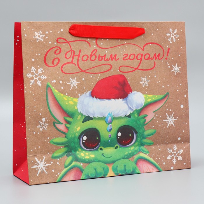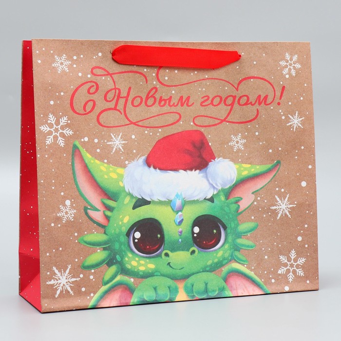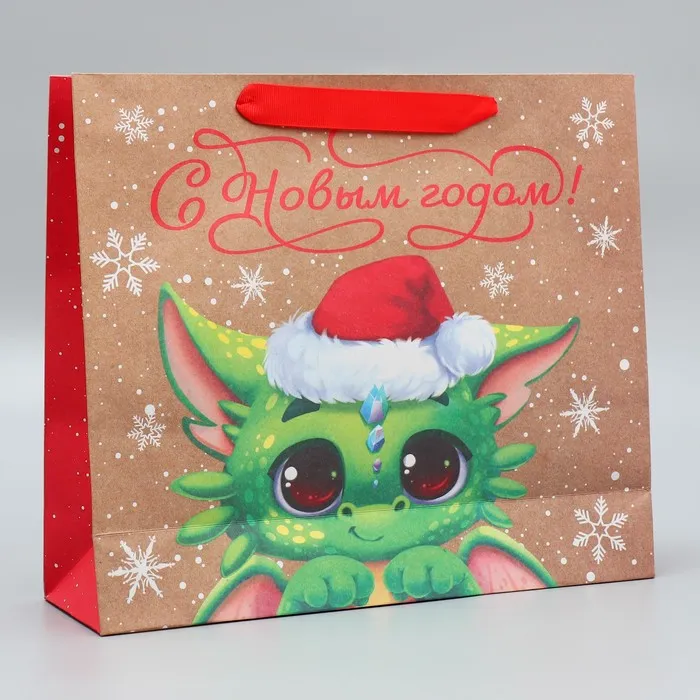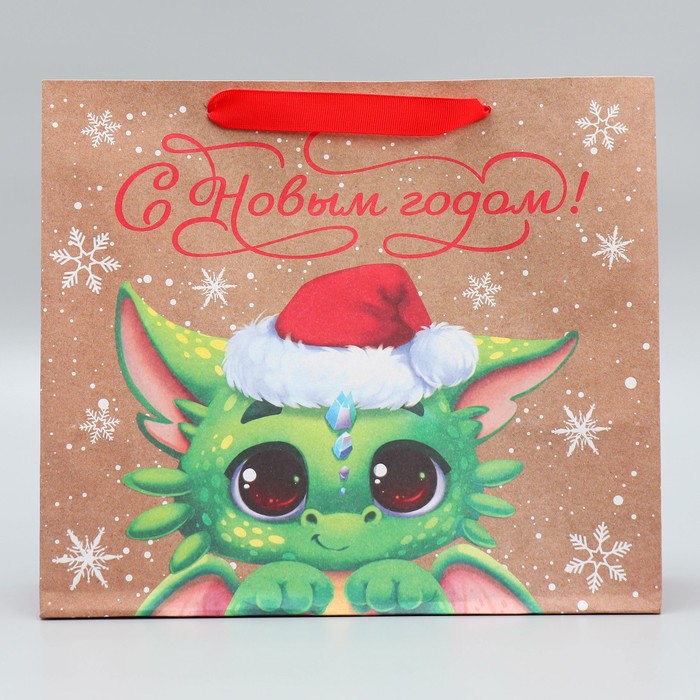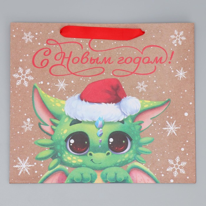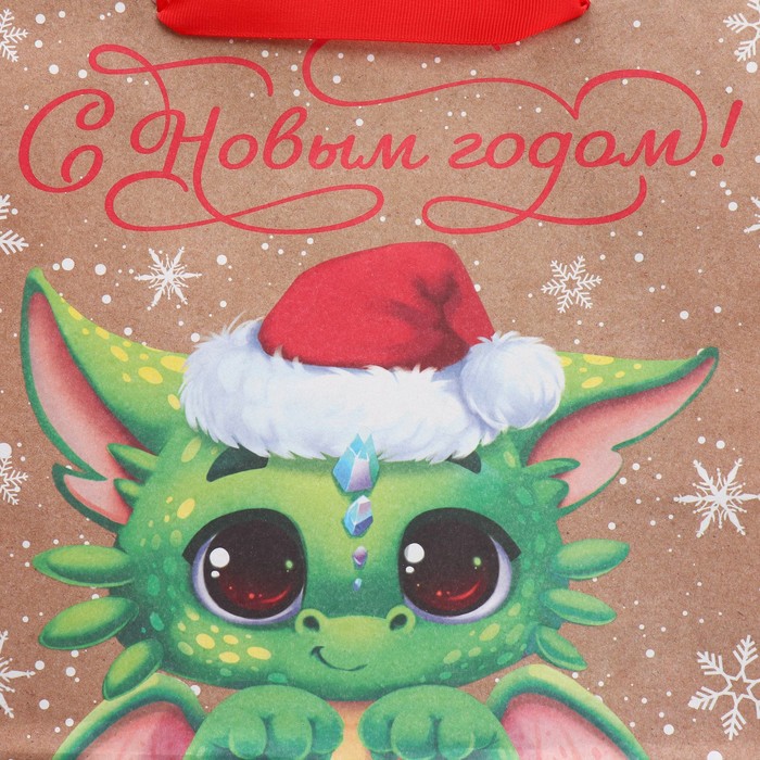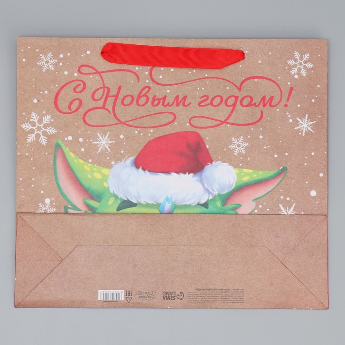 Пакет подарочный новогодний крафтовый «С новым годом», M 30×26×9 см — Характеристики