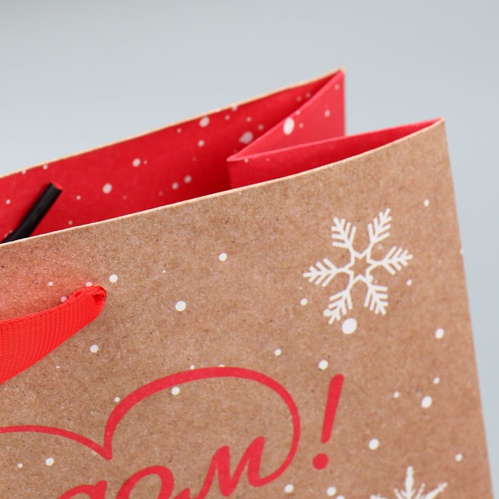 Пакет подарочный новогодний крафтовый «С новым годом», M 30×26×9 см