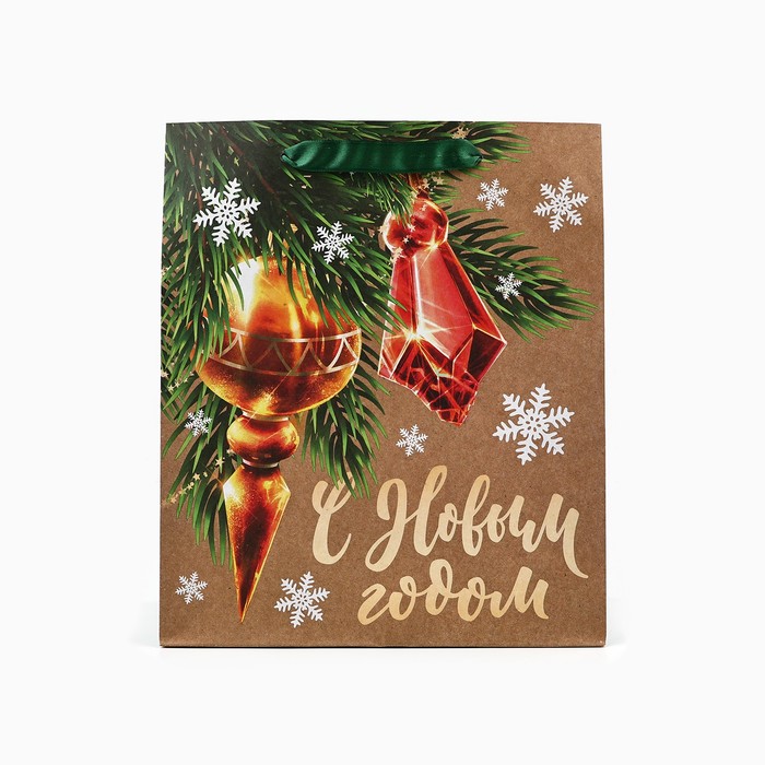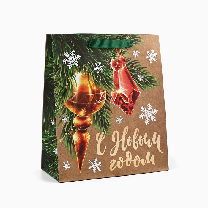 Пакет подарочный новогодний крафтовый «С Новым годом», ML 23 х 27 х 11.5 см