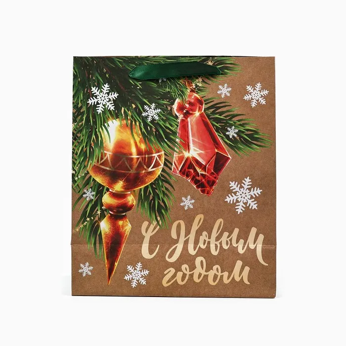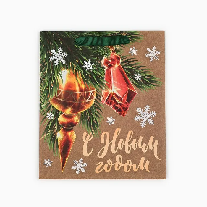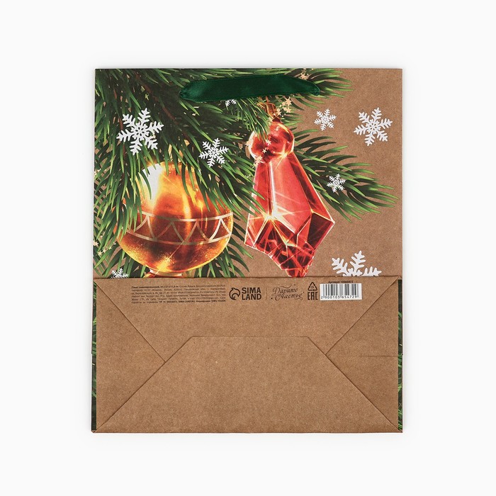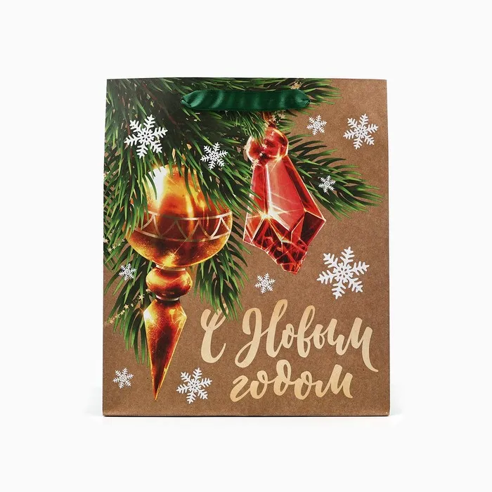 Пакет подарочный новогодний крафтовый «С Новым годом», ML 23 х 27 х 11.5 см — Характеристики