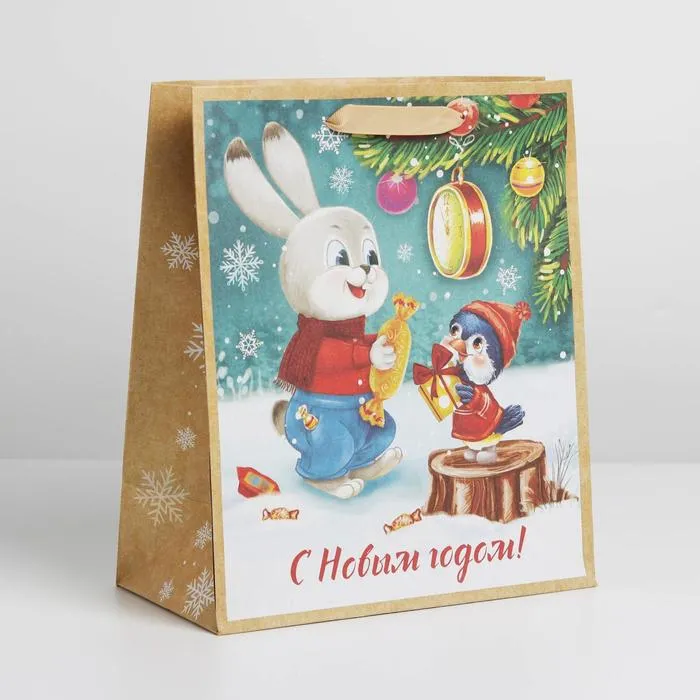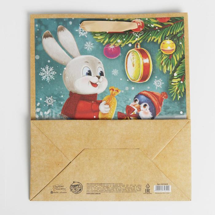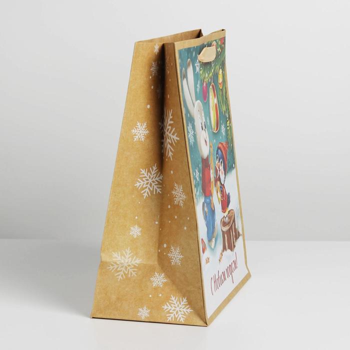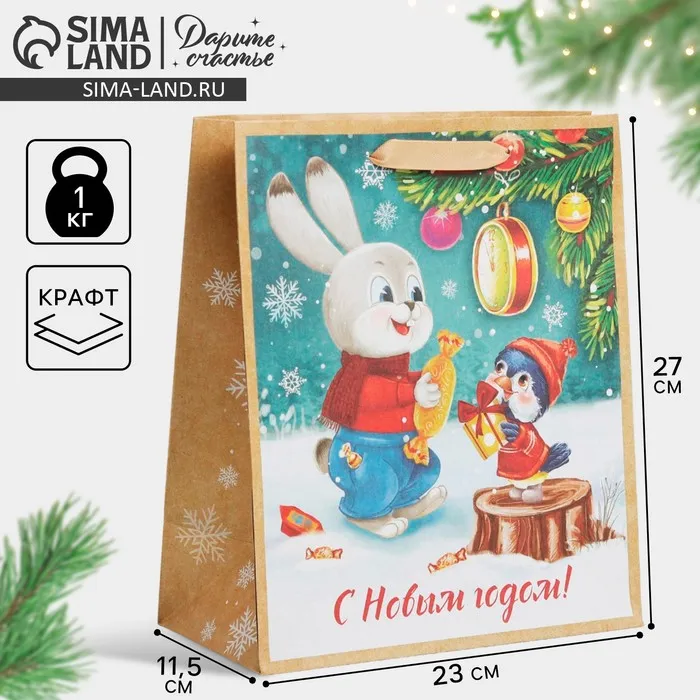 Пакет подарочный новогодний крафтовый «С Новым годом!», ML 23 х 27 х 8 см — Характеристики