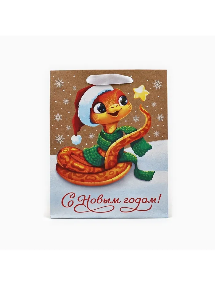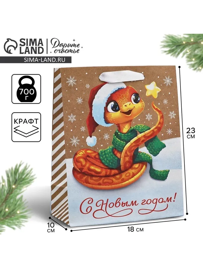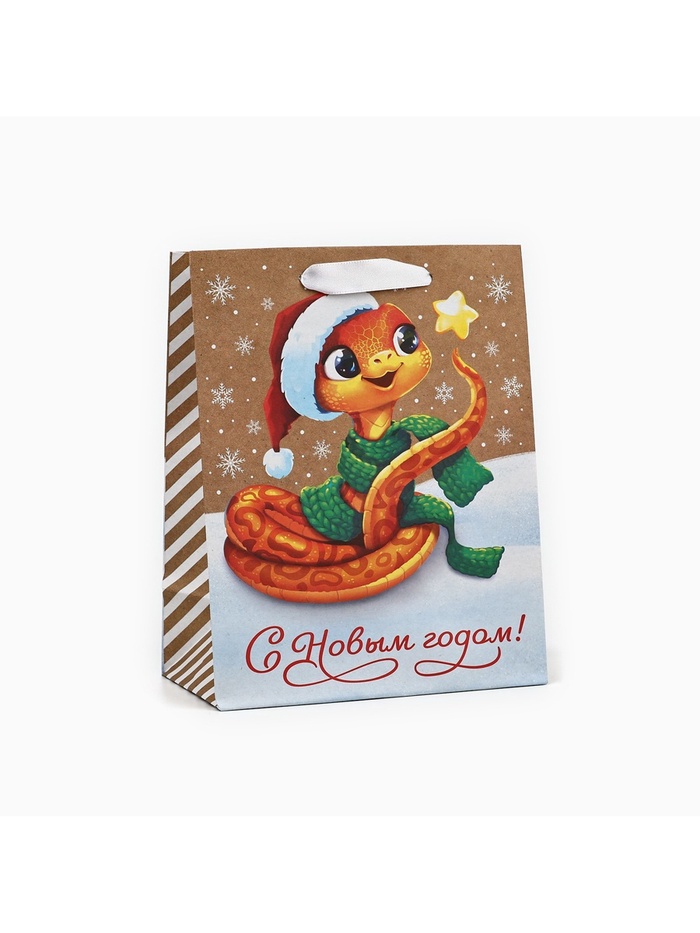 Пакет подарочный новогодний крафтовый «С новым годом», MS 18×23×10 см — Характеристики