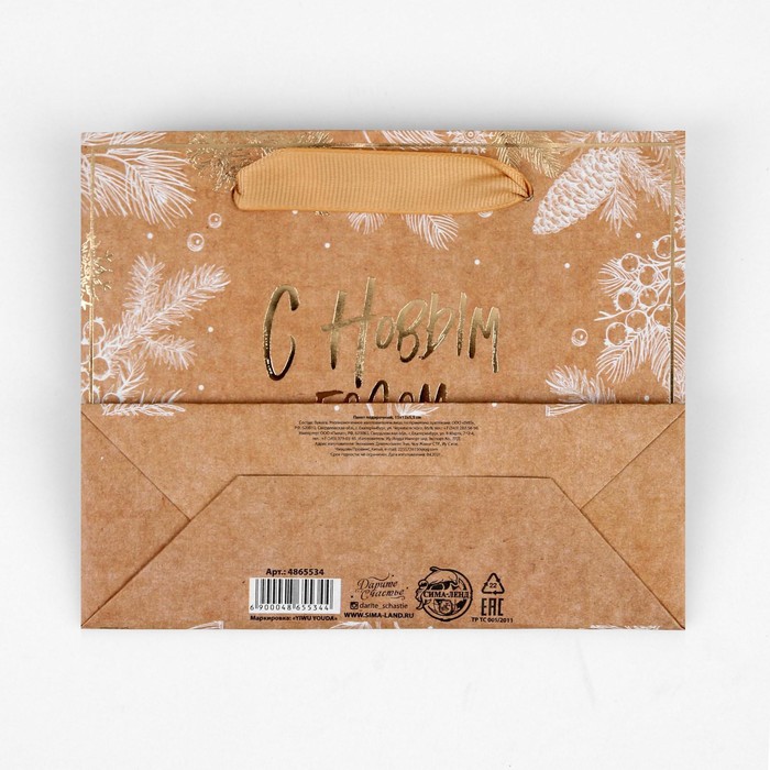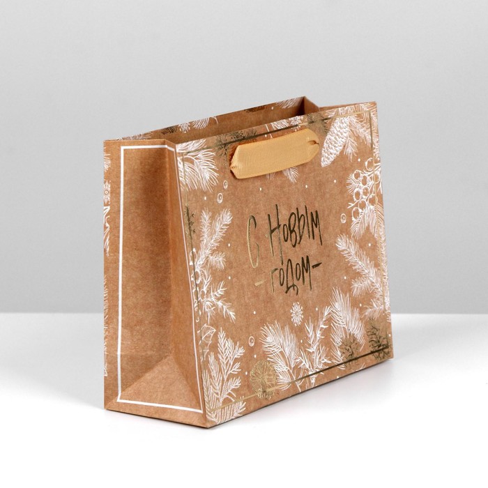 Пакет подарочный новогодний крафтовый «С Новым годом», S 15 х 12 х 5.5 см — Характеристики