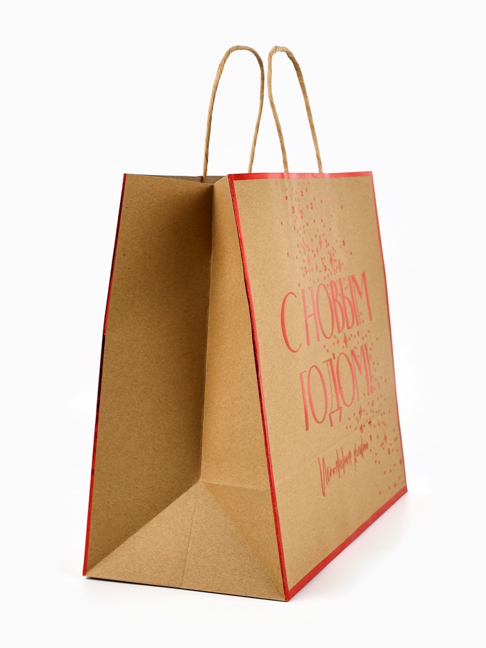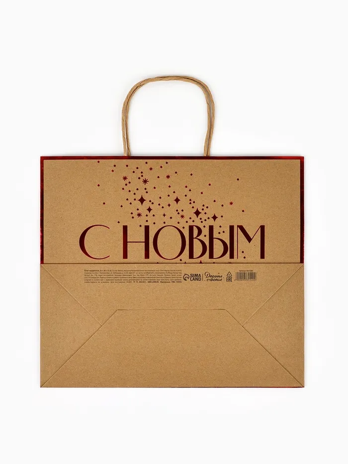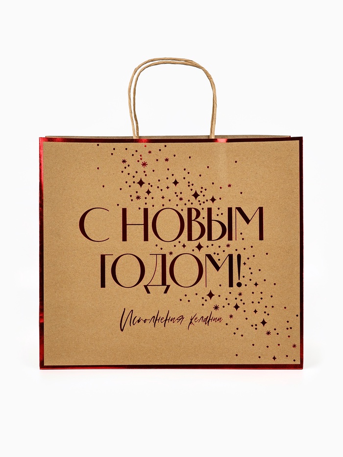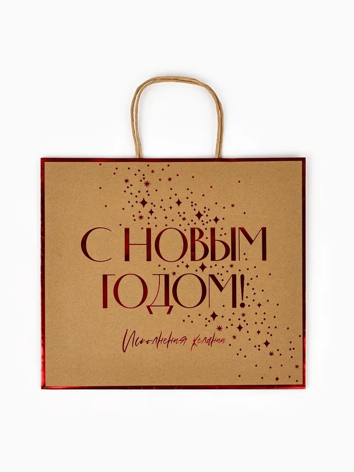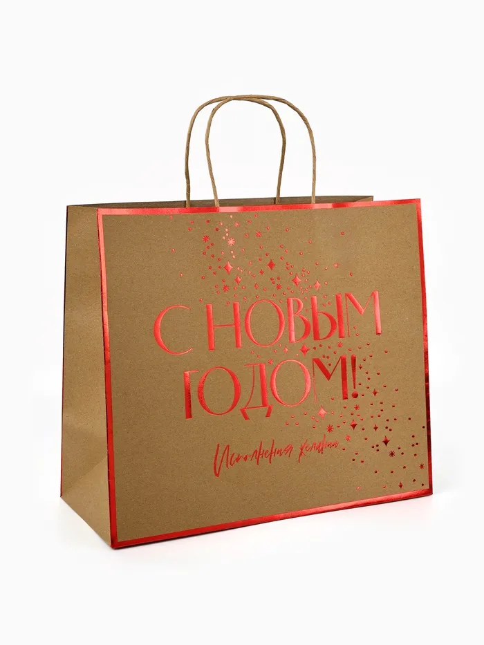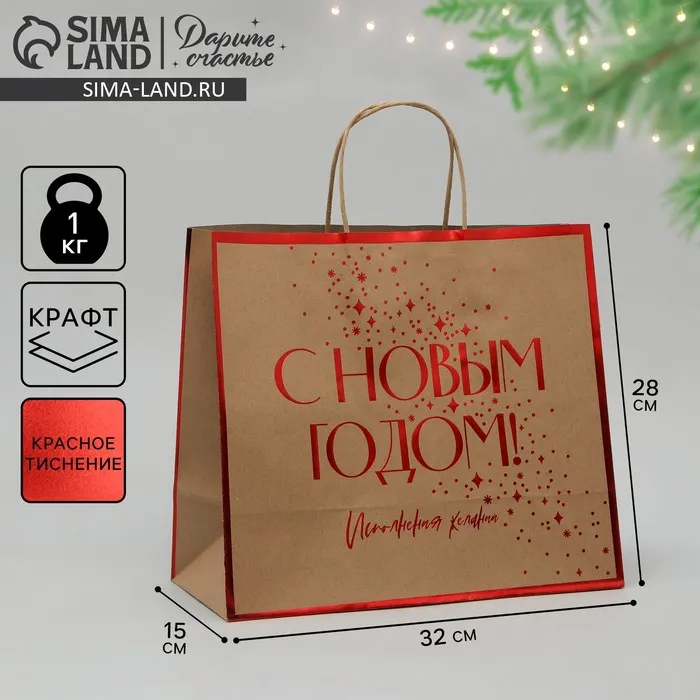 Пакет подарочный новогодний крафтовый «С Новым счастьем», 32 х 28 х 15 см — Характеристики