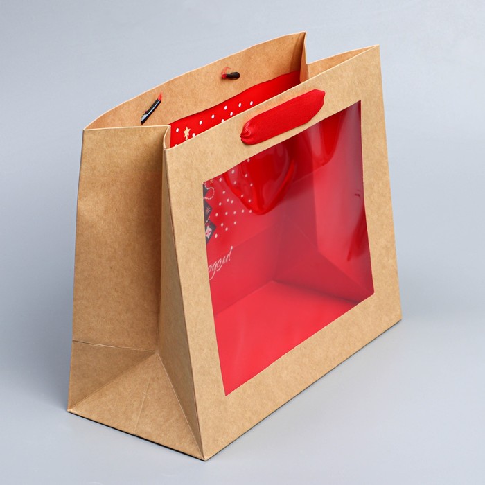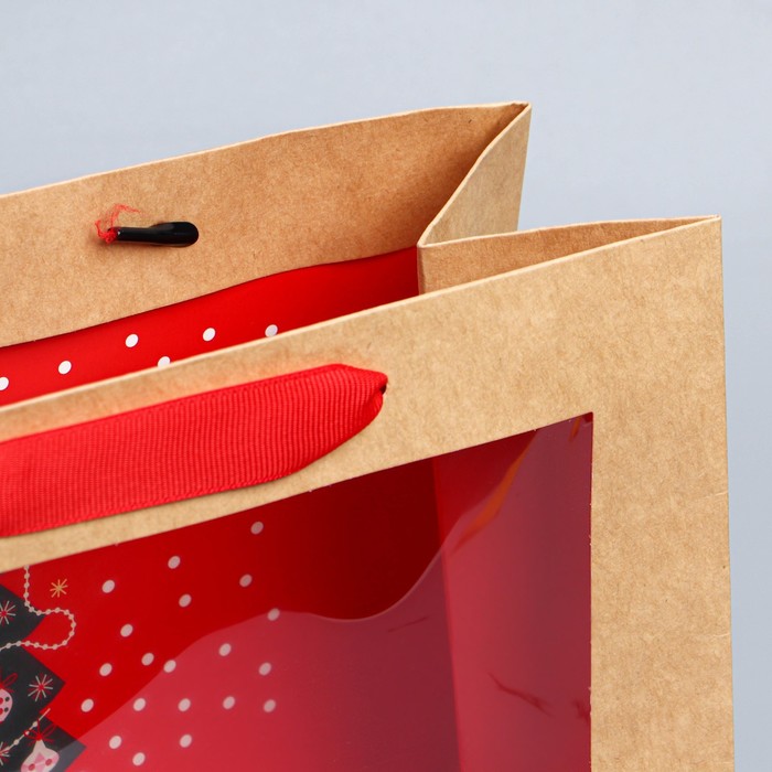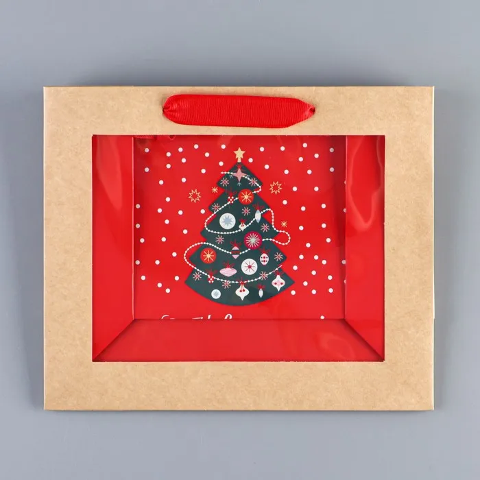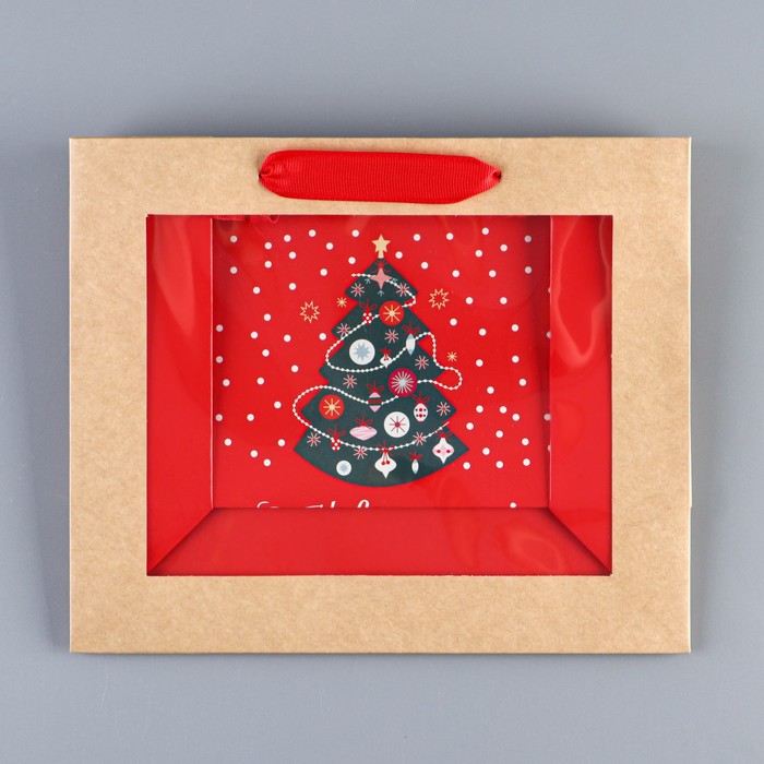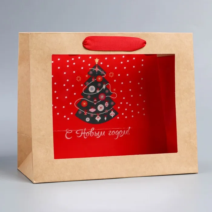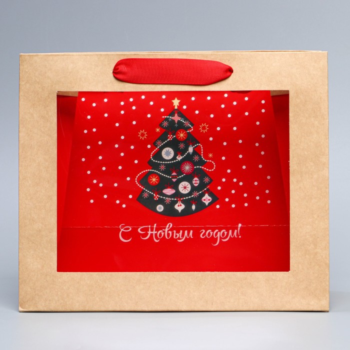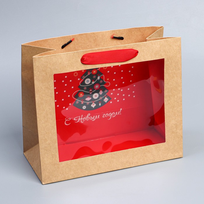 Пакет подарочный новогодний крафтовый с пластиковым окном «Новогодняя ёлка», 24 х 20 х 11см — Характеристики