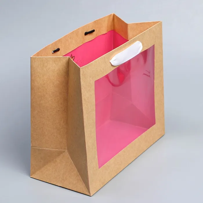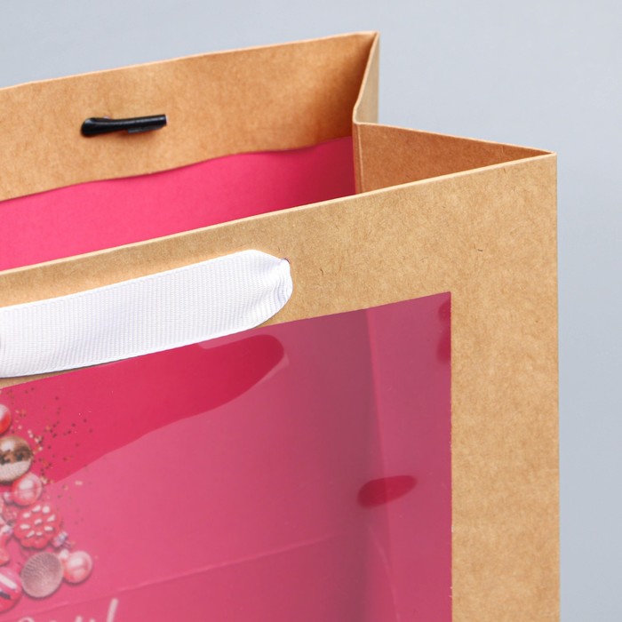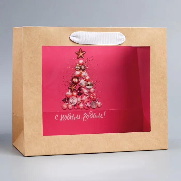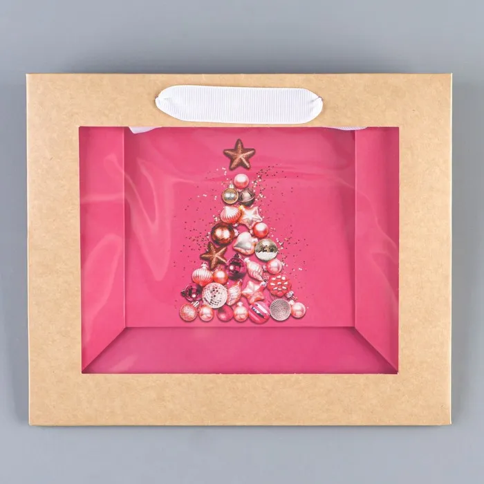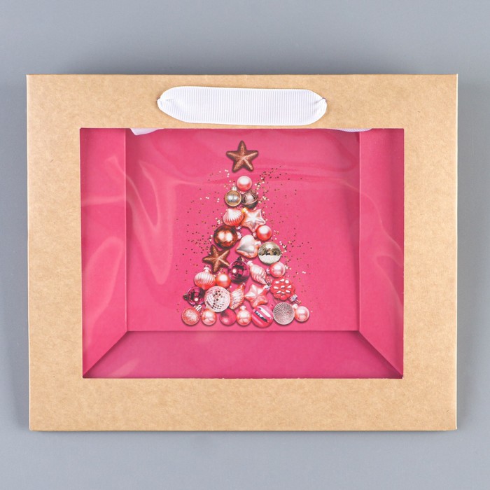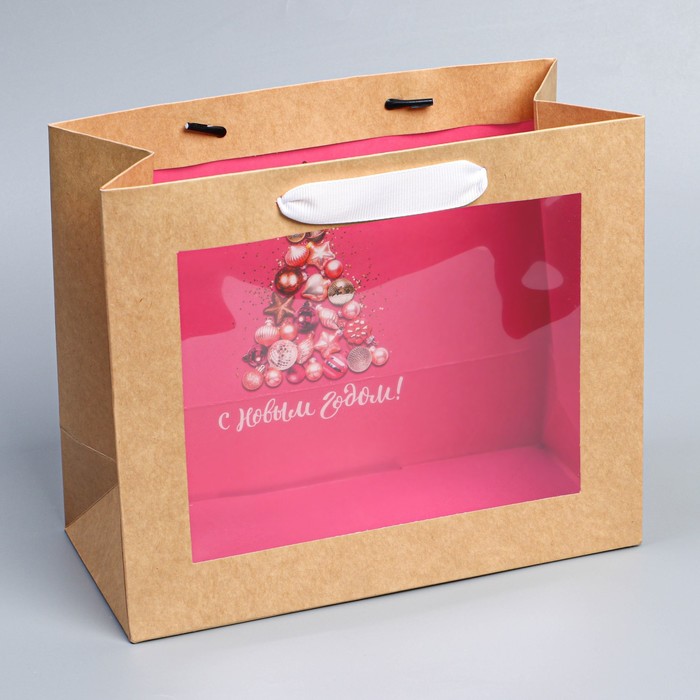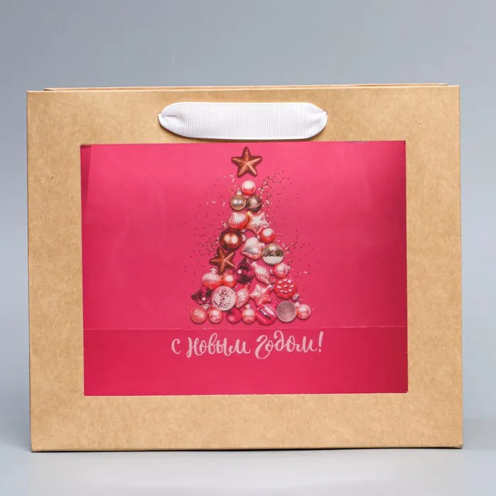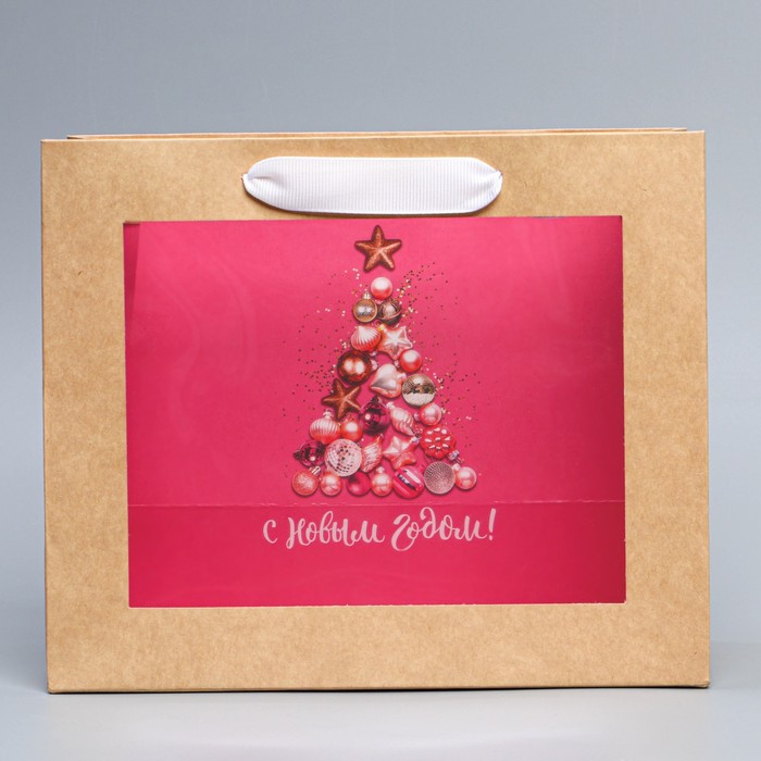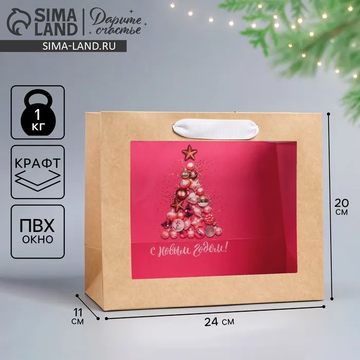 Пакет подарочный новогодний крафтовый с пластиковым окном «Новогодние шары», 24 х 20 х 11см — Характеристики