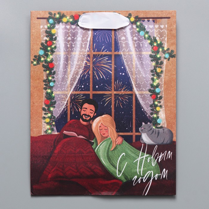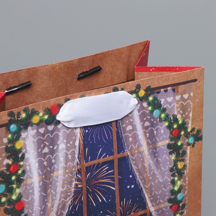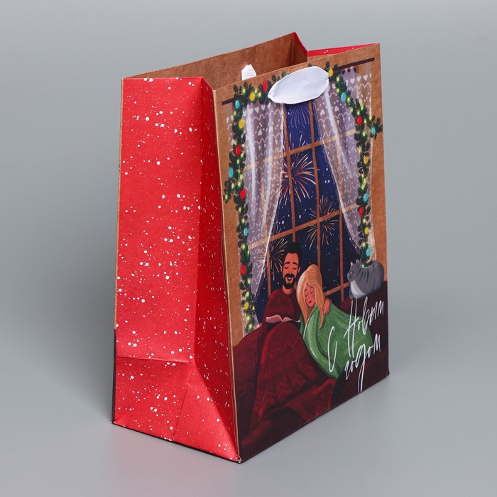 Пакет подарочный новогодний крафтовый Happy New Year, 32 х 28 х 15 см