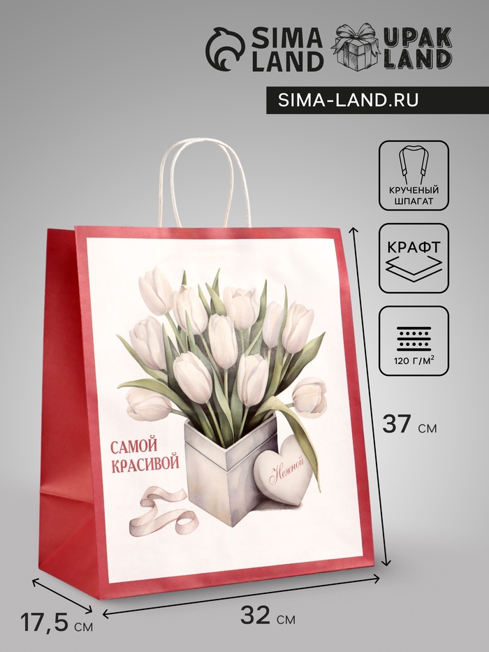 Пакет подарочный крафт «Самой красивой», 32×17.5×37 см