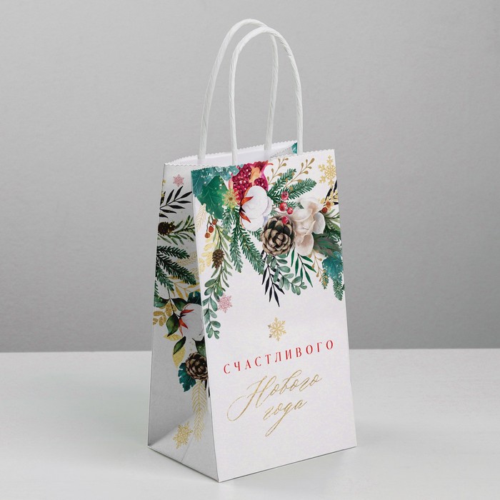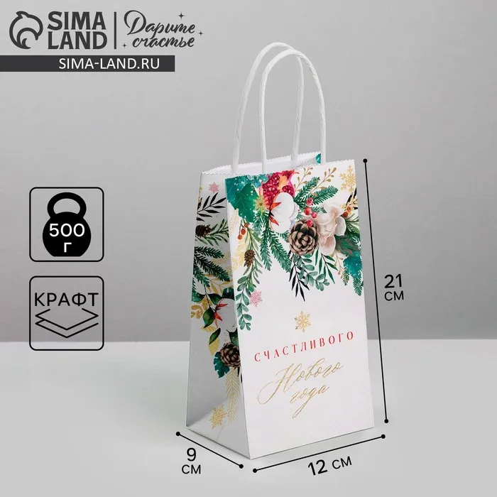 Пакет подарочный новогодний крафтовый «Счастье», 12 х 21 х 9 см — Характеристики