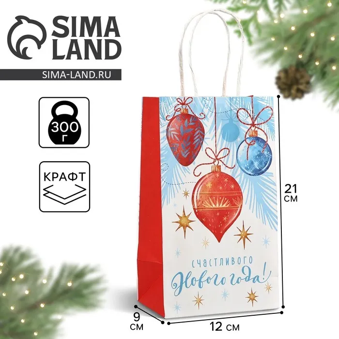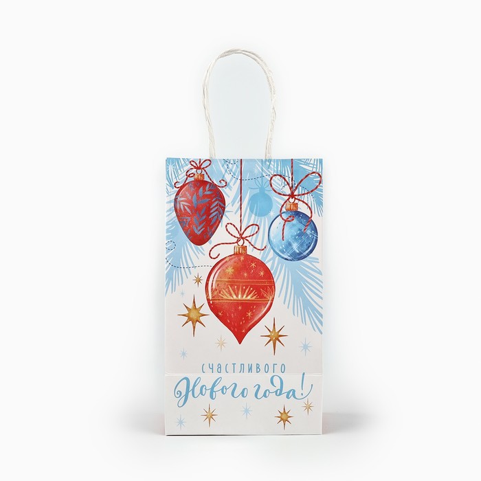 Пакет подарочный новогодний крафтовый «Счастливого нового года», 12 х 9 х 21 см — Характеристики