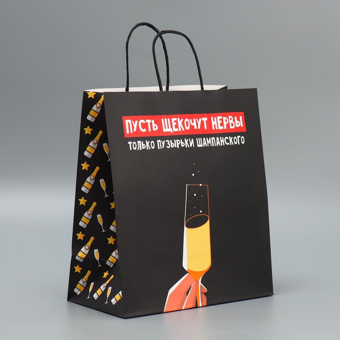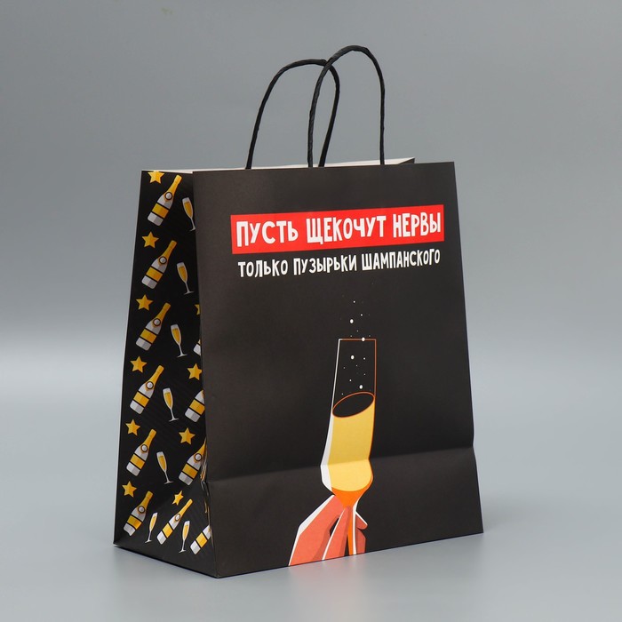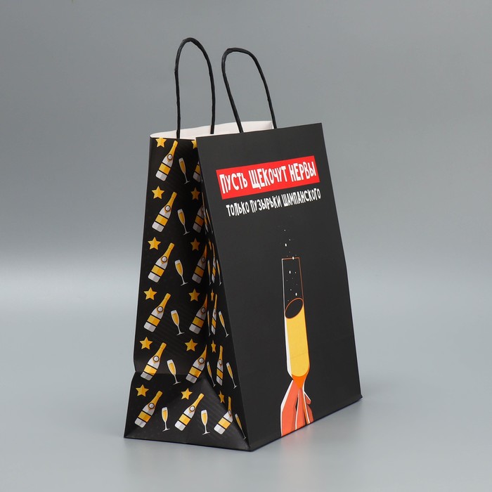 Пакет подарочный новогодний крафтовый «Шампанское», 28×32×15 см — Характеристики