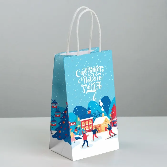Пакет подарочный новогодний крафтовый «Сказочного Нового года», 12×21×9 см — Характеристики
