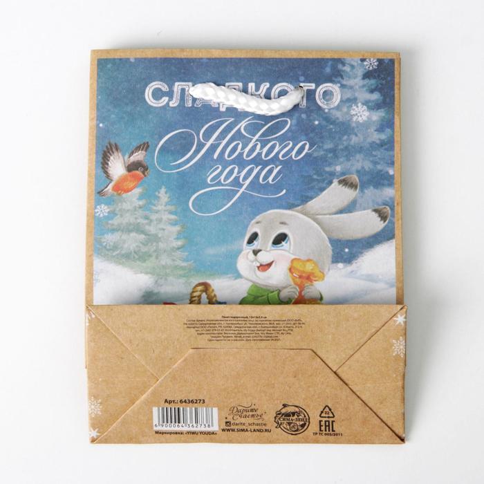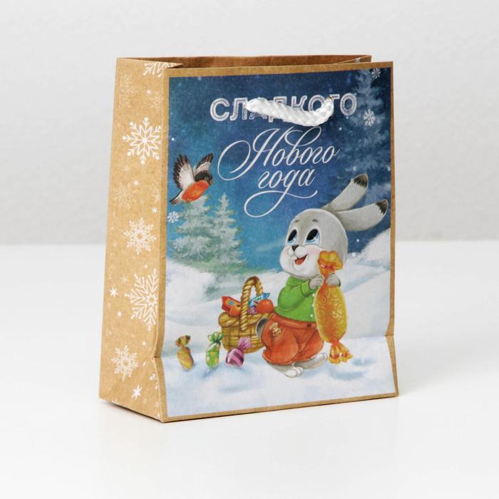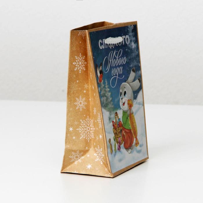 Пакет подарочный новогодний крафтовый «Сладкого Нового года», S 12×15×5.5 см — Характеристики