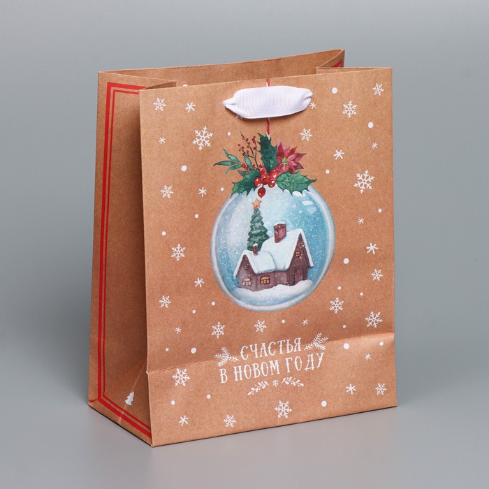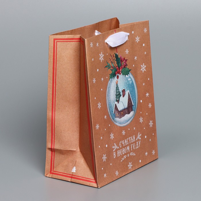 Пакет подарочный новогодний крафтовый «Новый год», 12 х 9 х 21 см
