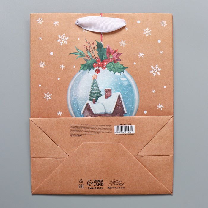 Пакет подарочный новогодний крафтовый «Snow», MS 18 х 23 х 10 см — Характеристики