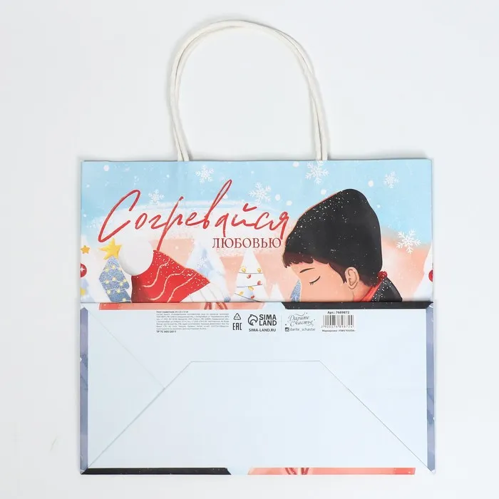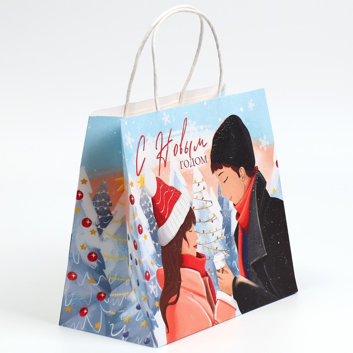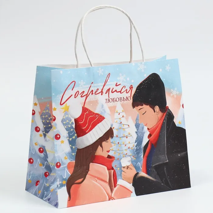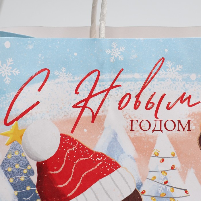 Пакет подарочный новогодний крафтовый «Согревайся», 25 х 22 х 12 см — Характеристики