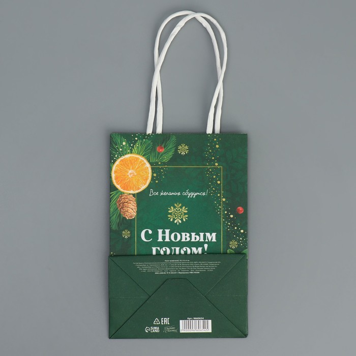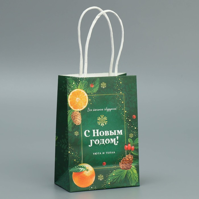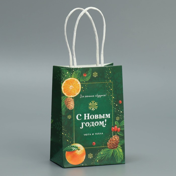 Пакет подарочный новогодний крафтовый «Тепло Нового года», 15 х 10 х 6 см — Характеристики