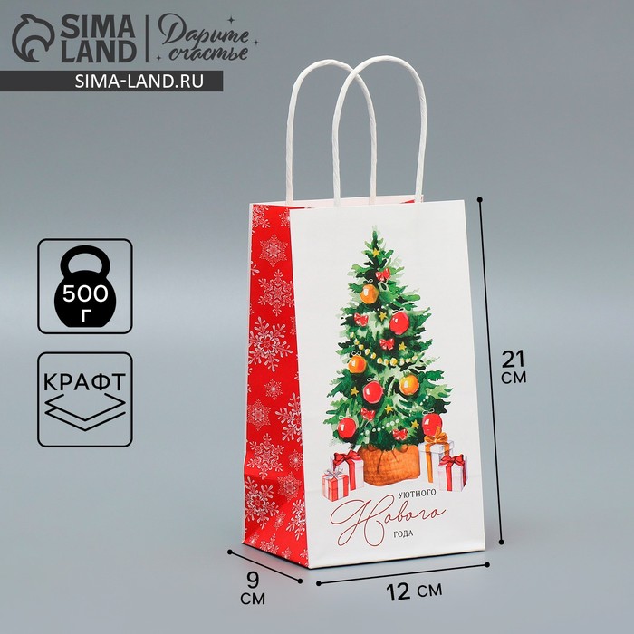 Пакет подарочный новогодний крафтовый «Уют в доме», 12 х 21 х 9 см — Характеристики