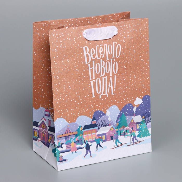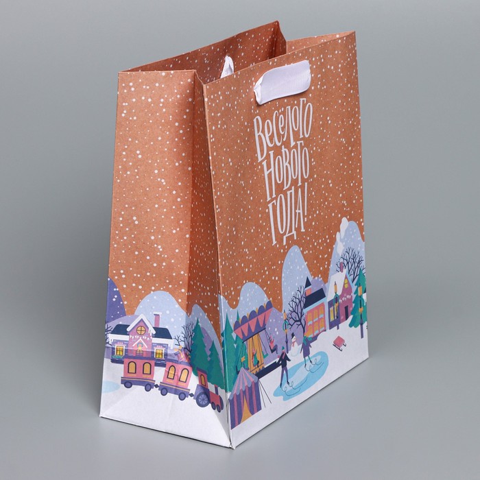 Пакет подарочный новогодний крафтовый «Весёлого Нового года», MS 18 х 23 х 10 см