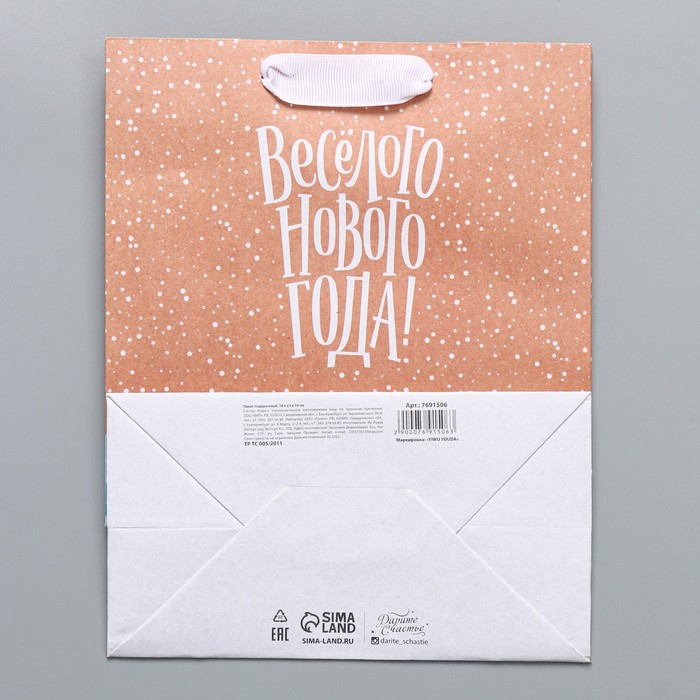 Пакет подарочный новогодний крафтовый «Весёлого Нового года», MS 18 х 23 х 10 см — Характеристики