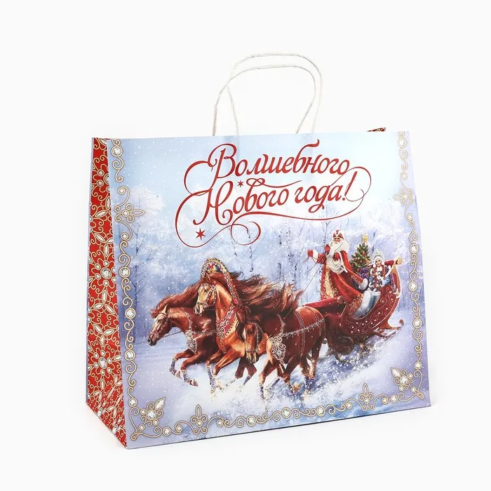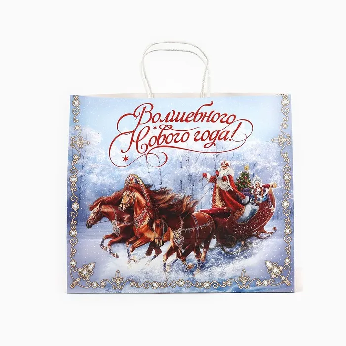 Пакет подарочный новогодний крафтовый «Волшебного нового года», 28 х 15 х 32 см — Характеристики
