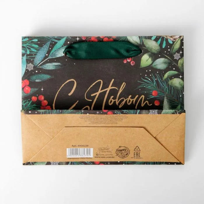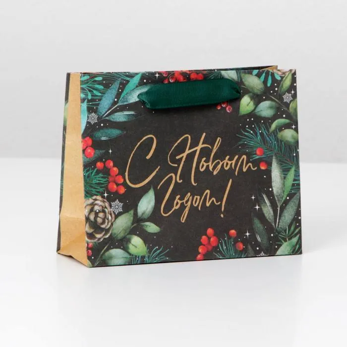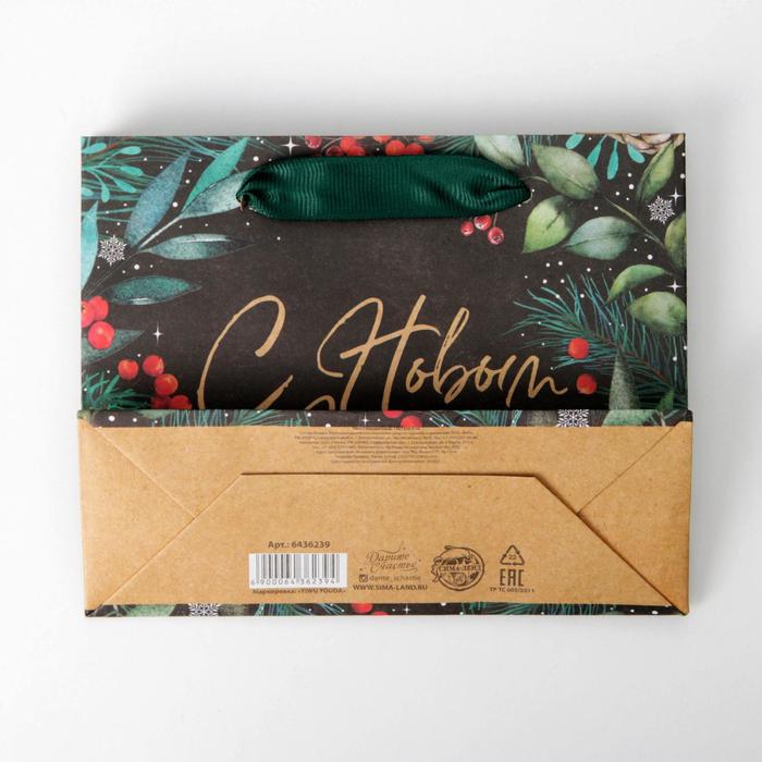 Пакет подарочный новогодний крафтовый «Волшебный праздник», S 15 х 12 х 5.5 см — Характеристики