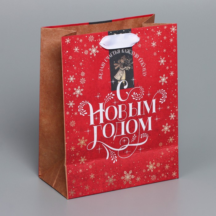 Пакет подарочный новогодний крафтовый «Желаю счастья», MS 18 х 23 х 10 см