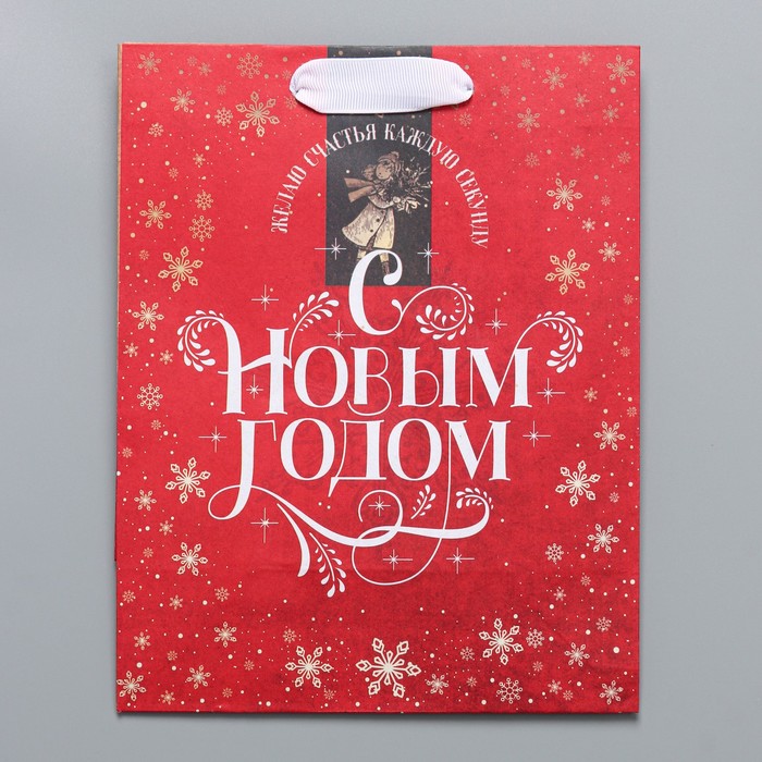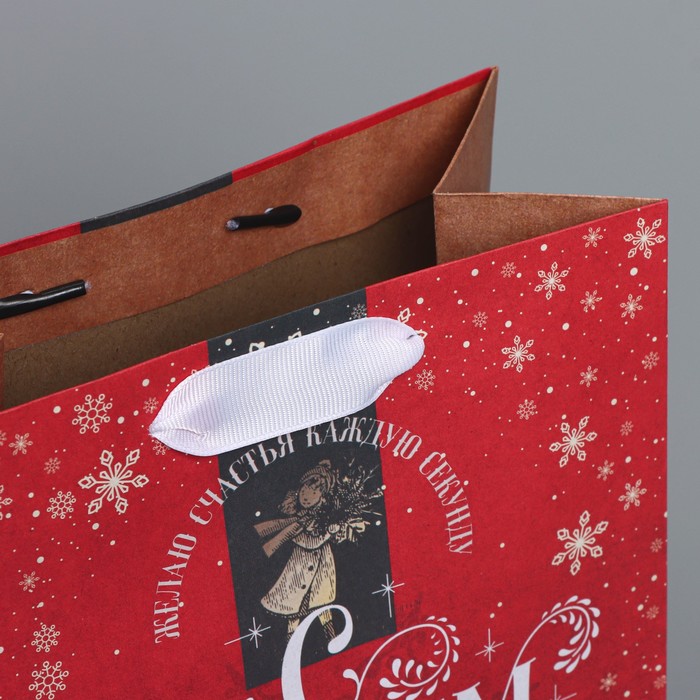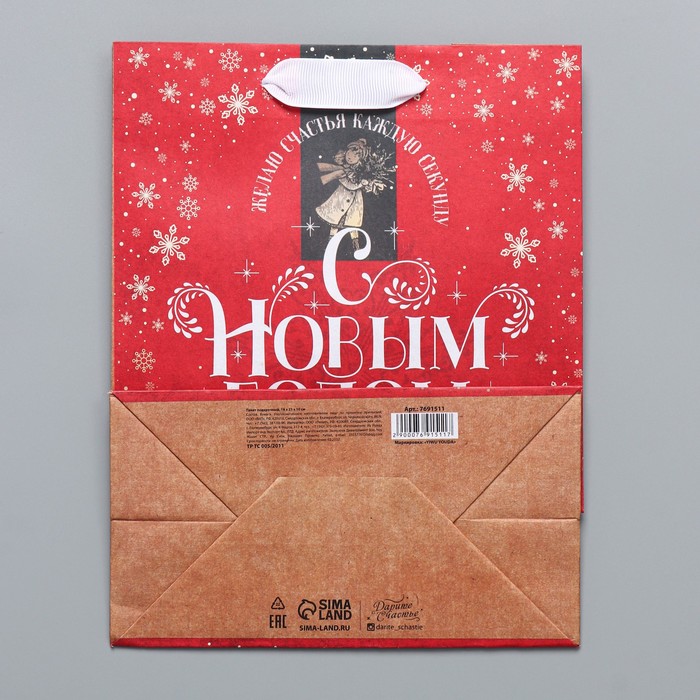 Пакет подарочный новогодний крафтовый «Желаю счастья», MS 18 х 23 х 10 см — Характеристики