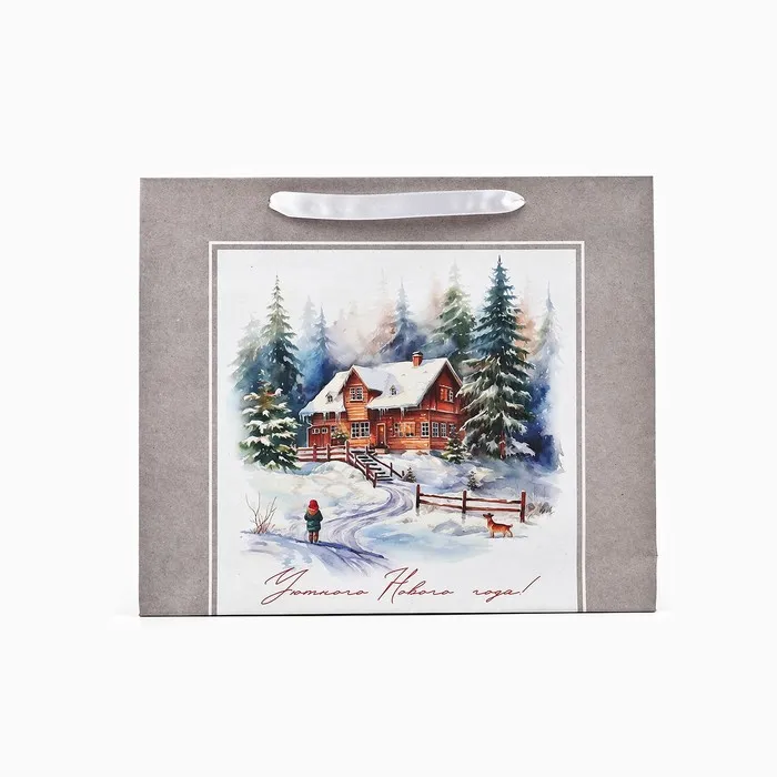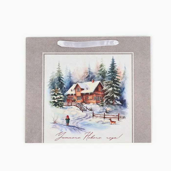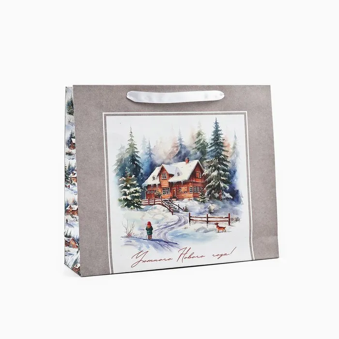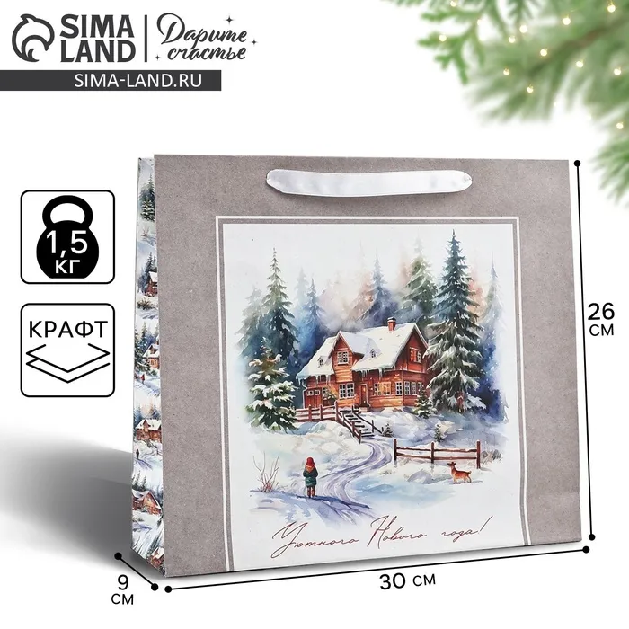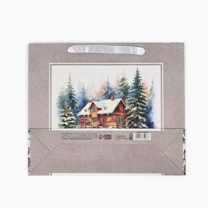 Пакет подарочный новогодний крафтовый «Зимний лес», M 26 х 30 х 9 см — Характеристики