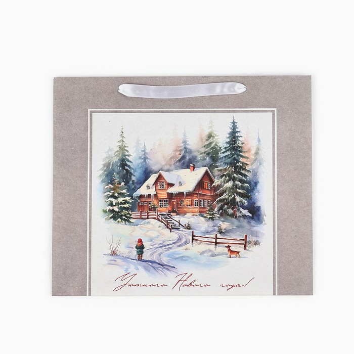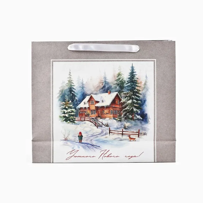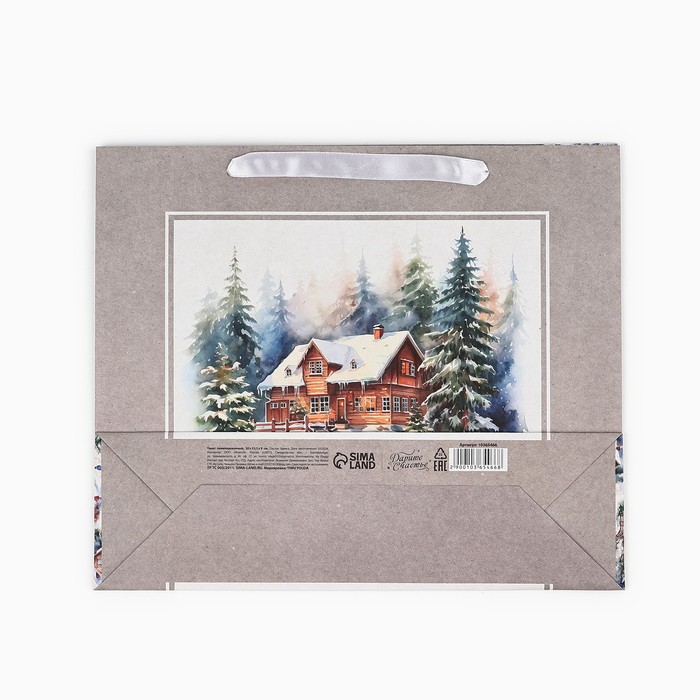 Пакет подарочный новогодний крафтовый «Зимний лес», M 26 х 30 х 9 см