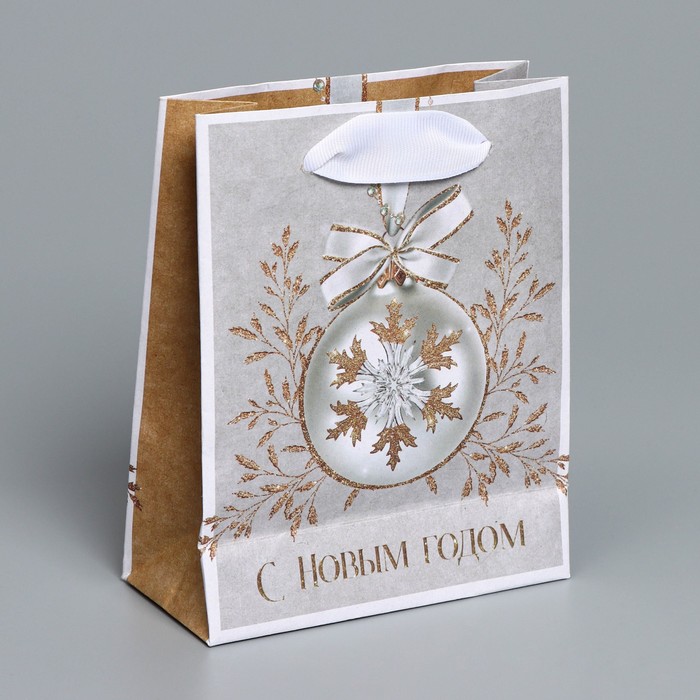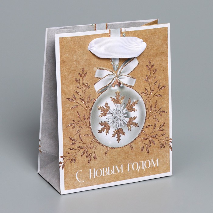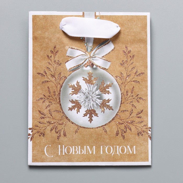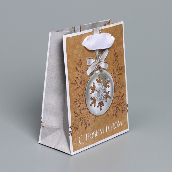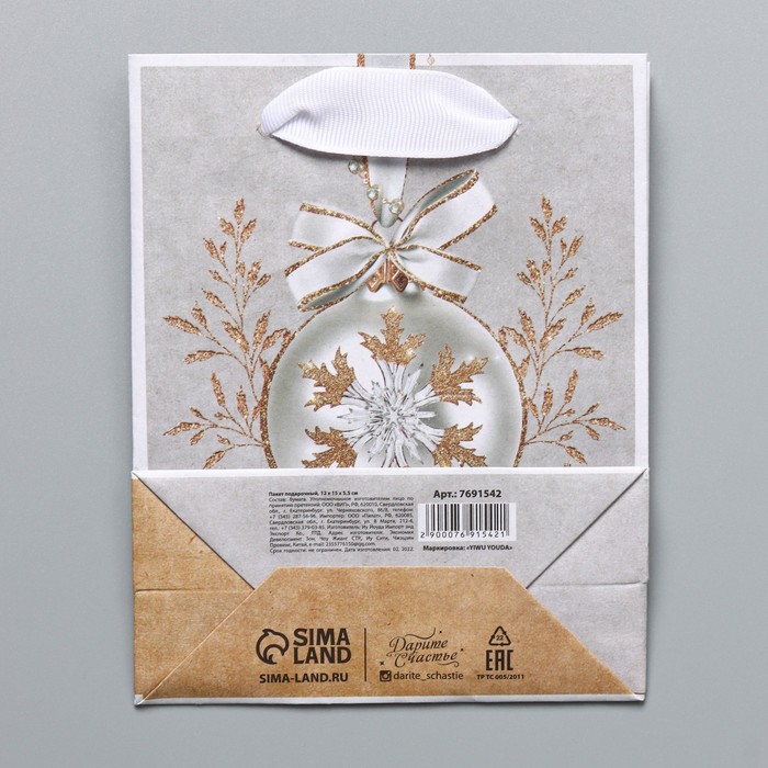 Пакет подарочный новогодний крафтовый «Золото», S 12 х 15 х 5.5 см — Характеристики