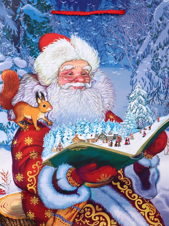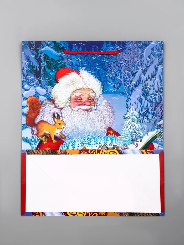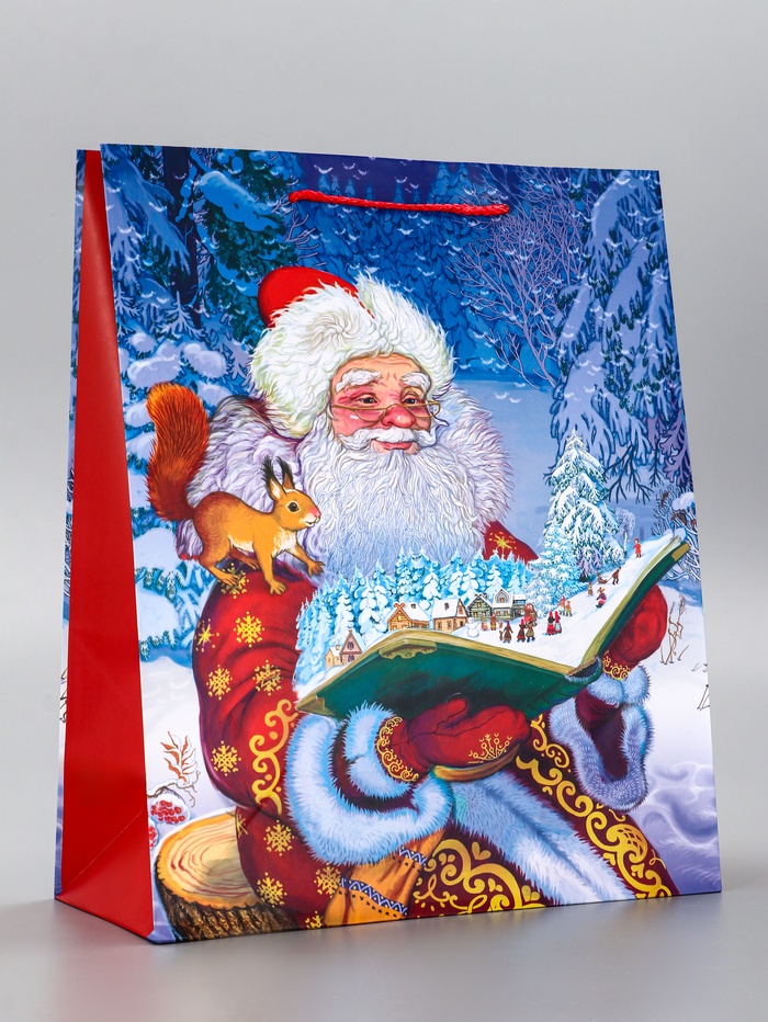 Пакет подарочный новогодний ламинированный, «Дед Мороз» , 26×12×32 см — Характеристики
