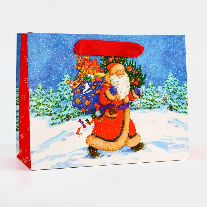 Подарочный пакет, ламинированный и новогодний — это идеальный выбор для упаковки ваших праздничных сюрпризов. Этот пакет сочетает в себе практичность и элегантный дизайн, который украсит любой подарок и создаст особую атмосферу волшебства и радости.