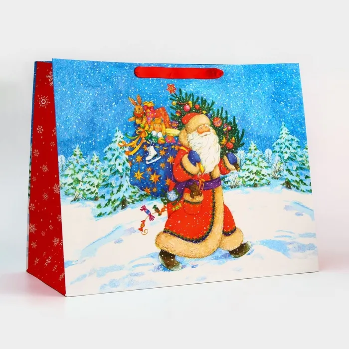 Подарочный пакет, ламинированный и новогодний — это идеальный выбор для упаковки ваших праздничных сюрпризов. Этот пакет сочетает в себе практичность и элегантный дизайн, который украсит любой подарок и создаст особую атмосферу волшебства и радости.