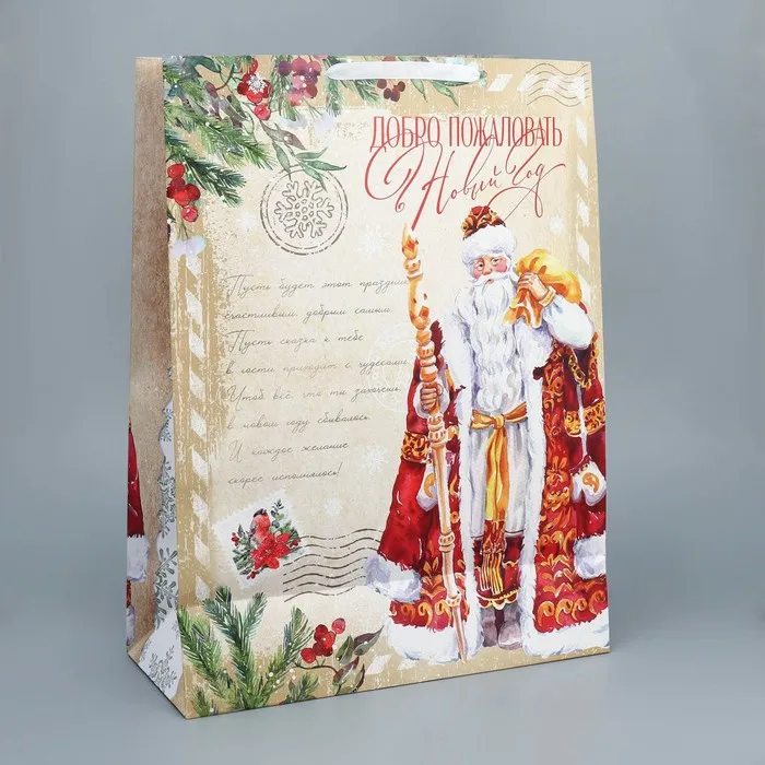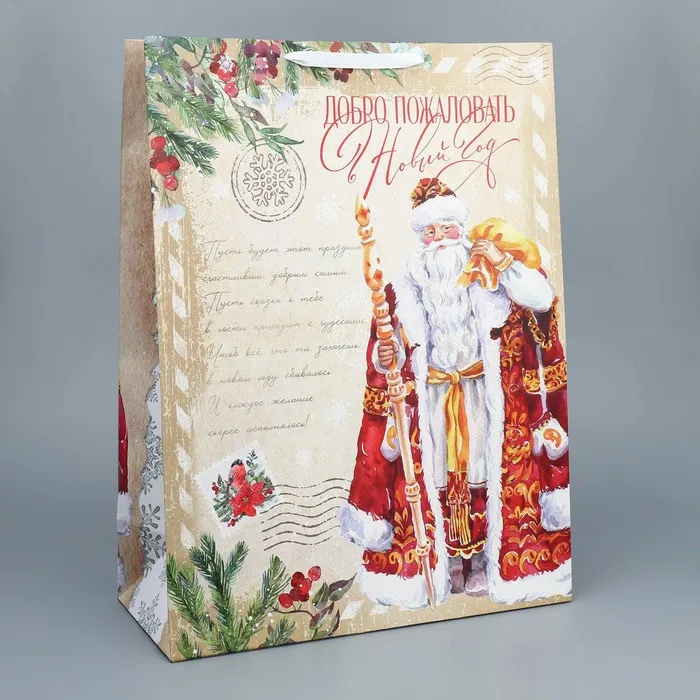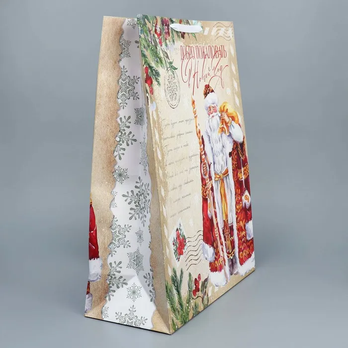 Пакет подарочный новогодний ламинированный «Дедушка Мороз», XXL 46×61×20 см — Характеристики