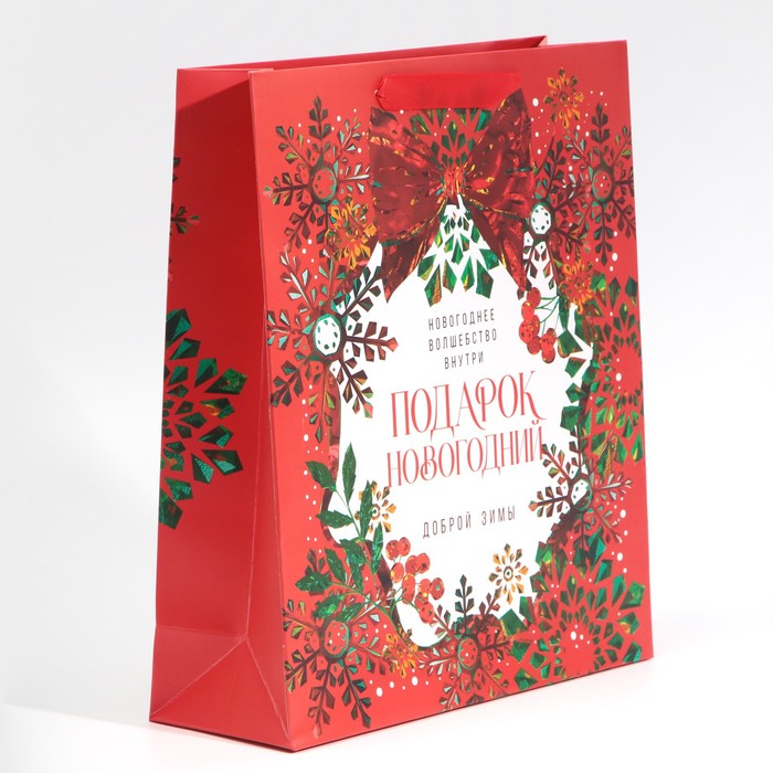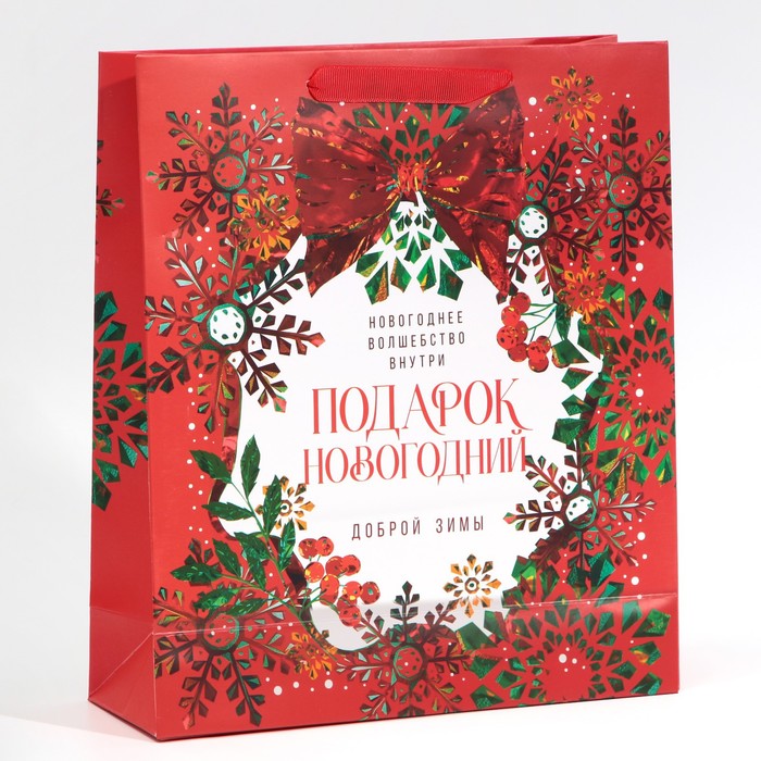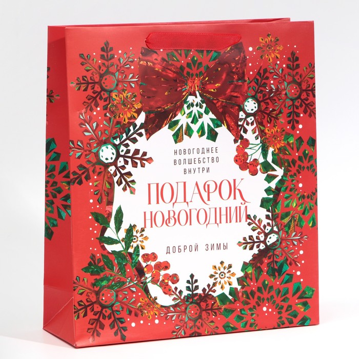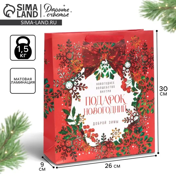 Пакет подарочный новогодний ламинированный «Добрая зима», M 26 х 30 х 9 см — Характеристики