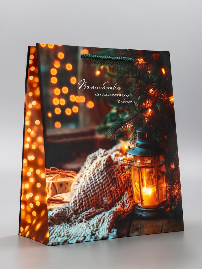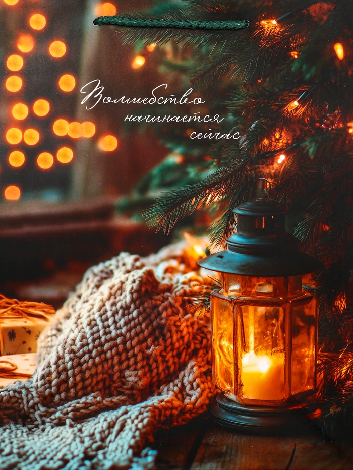 Пакет подарочный новогодний ламинированный, «Домашний уют Новыго Года» , 26×12×32 см — Характеристики