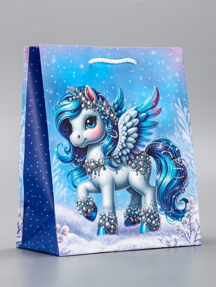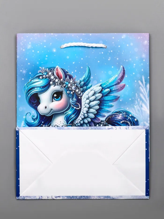 Добавьте волшебства в новогодний праздник! Подарочный пакет «Единорог» — это ламинированная упаковка для новогодних презентов. Сказочный дизайн с изображением единорога создаёт атмосферу чуда и волшебства.
