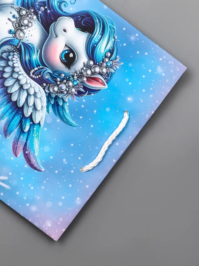 - Волшебный дизайн: Изображение единорога на голубом фоне создаёт атмосферу сказки и праздника. Нежный голубой цвет подходит для подарков разной тематики.
