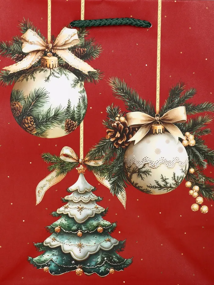 - Универсальное оформление: Классическое сочетание красного цвета с новогодними шарами подходит для подарков и девочкам, и мальчикам. Тематика напоминает о праздничных украшениях и создаёт настроение.